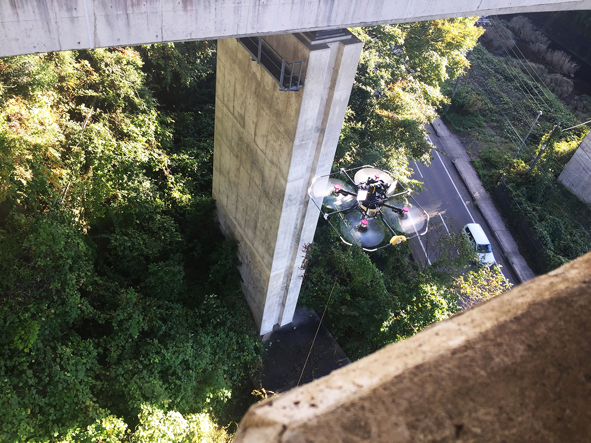 一口に橋梁と言っても千差万別で、人が調査点検をするには手間がかかります。そこで、その省力化を念頭に、4年ほど前から国立研究開発法人新エネルギー・産業技術総合開発機構(NEDO)の支援を受けて川田テクノロジーズとともに、橋梁点検のニーズを満たしたドローンの開発に取り組んでいます。NEDO「インフラ維持管理・更新等の社会課題対応システム開発プロジェクト」の一環として行ったものです。点検に資する安定した飛行を可能にする機体は完成したので、現在は人材育成や運用体制の構築、ドローンの長所を活かせる点検手法の組合せやスキームの立案を進め、2019年度末の実用化を目指して開発を続けています。さらにはその先に、画像解析やAI技術の組込みが視野に入っています。また、これらの技術は社内に抱え込むのではなく、国全体における点検作業の省力化につながるようにオープンにして、橋梁分野におけるリーディングカンパニーとしての責務を果たしたいと考えています。