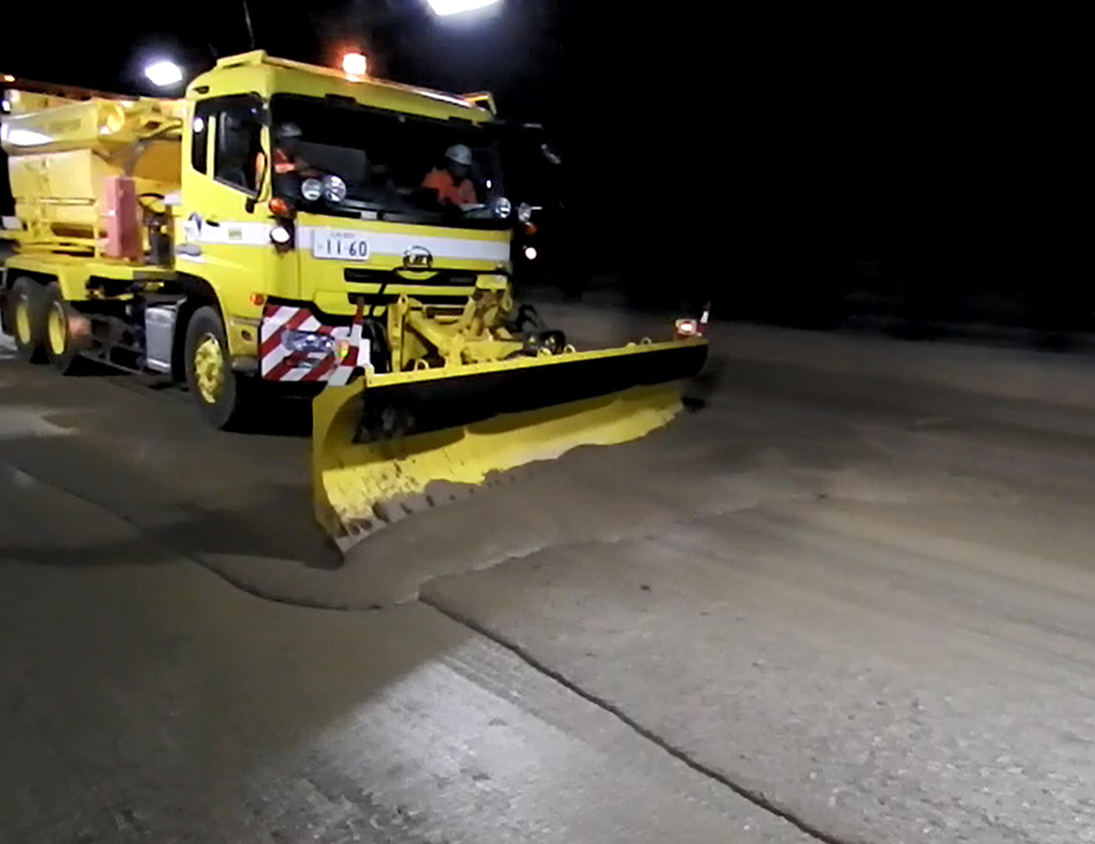除雪車による土砂撤去と散水車による清掃