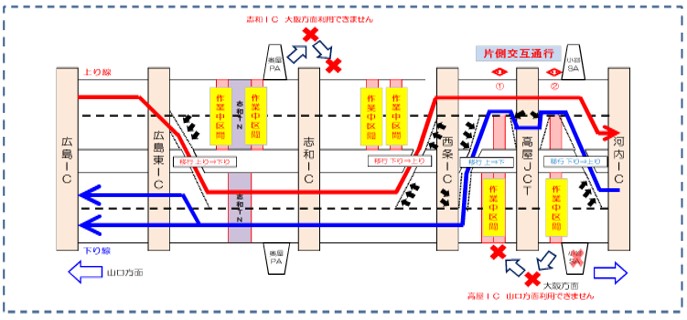 高屋JCT~西条IC間の復旧作業