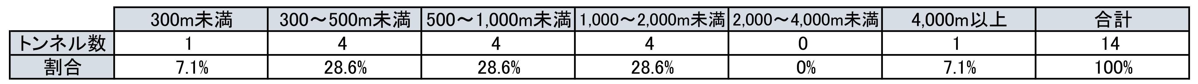 渡邊 14箇所を管理しており、工種別では在来工法が2箇所、NATM工法が12箇所です。延長別では国道333号の新佐呂間トンネル(平成21年3月14日開通)が最長で4,110mに達します。なお、同トンネルでは施工時期に起きた、工事とは関係のない竜巻で現場副所長ら9人が亡くなるという痛ましい自然災害が起きています(編集部注:『平成18年11月北海道佐呂間町竜巻緊急災害調査報告書』(土木学会)https://www.jsce.or.jp/report/40/files/saroma_report.pdf)。次いで1,000m~2,000m未満が4箇所、500m~1000m未満が4箇所、300m~500m未満が4箇所、300m未満が1箇所となっています。