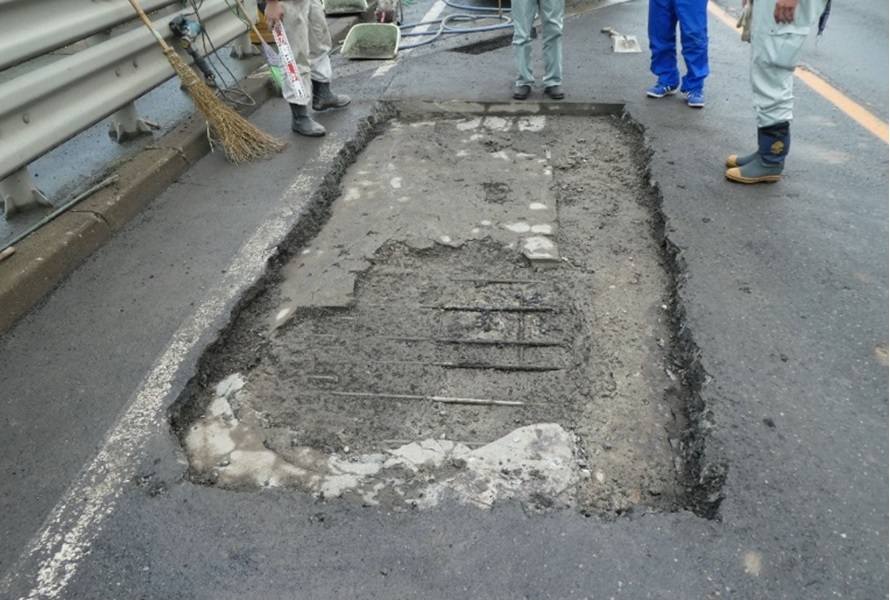 渡邊 昭和53年以前の鋼橋は版厚が薄いRC床版(180mm程度)で、荷重増加による劣化が進行していて、上面のひび割れ、土砂化、鉄筋露出などが生じています。事例としては国道39号の泉跨線橋、国道333号の敷島橋があり、両橋とも通行の安全性は確保しましたが、今後も状態を注視するとともに、抜本的な対策について検討を進めてまいります。