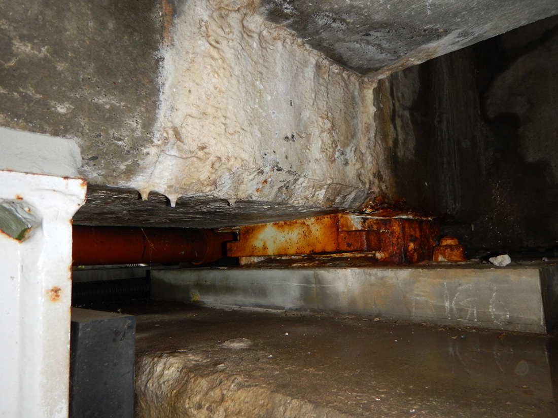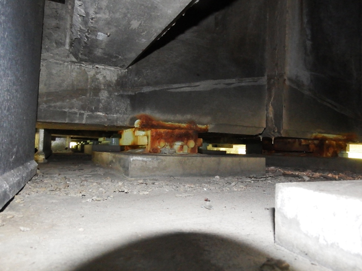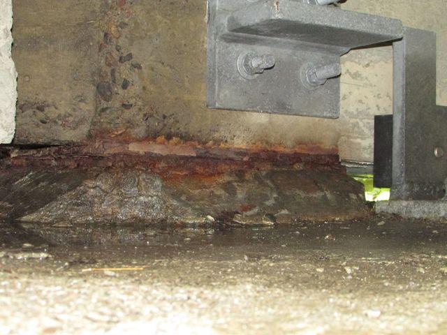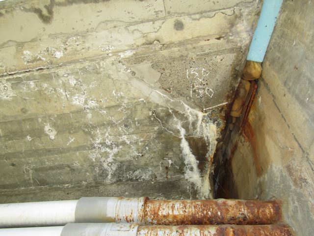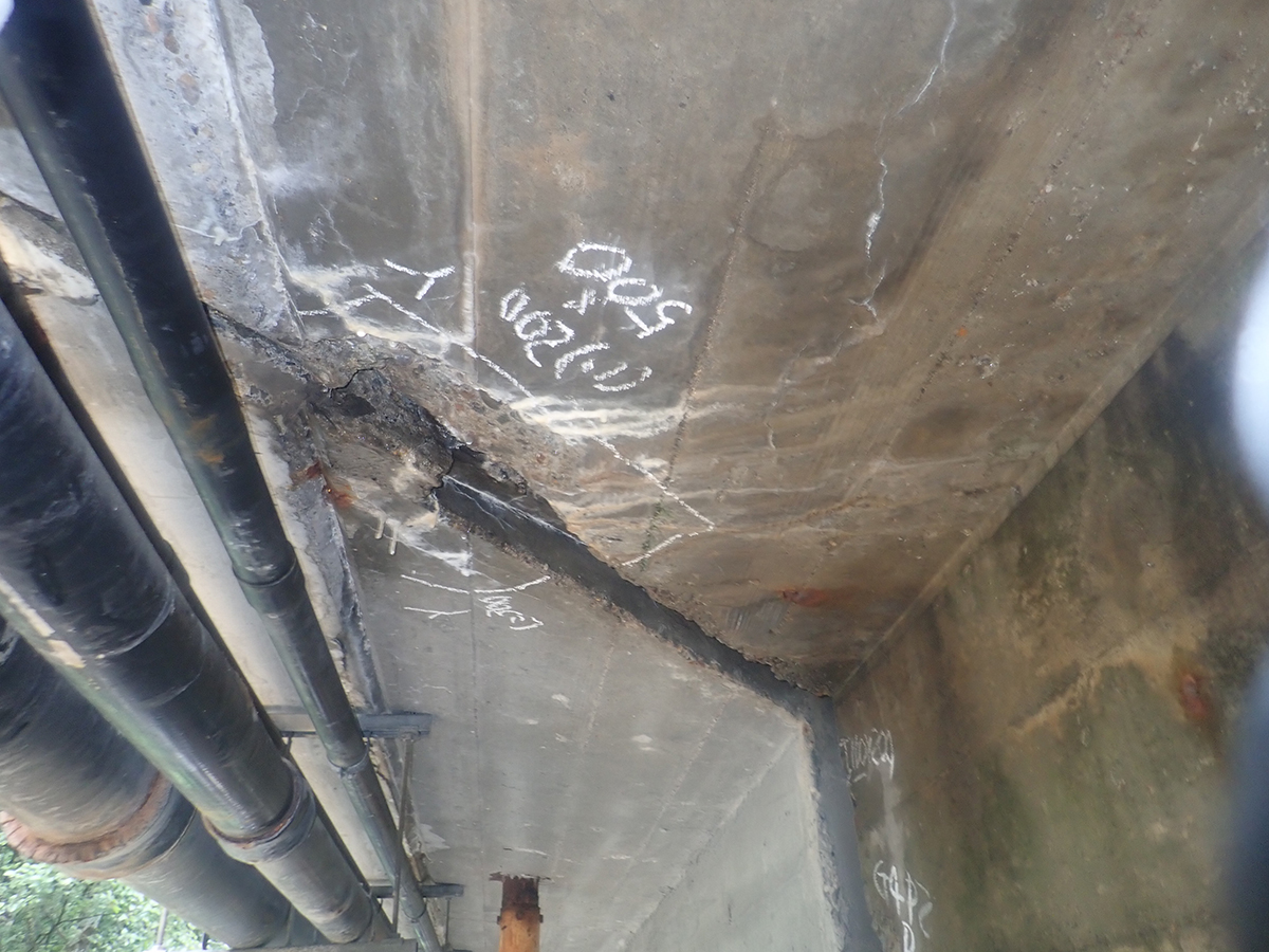 PC橋では伸縮装置の漏水によって、PC定着部より雨水がシース内に浸入し、グラウト未充填部のPC鋼材の腐食や凍結による損傷が発生するとともに、支承腐食も生じています。事例としては国道242号の開盛橋や社名渕橋があります。