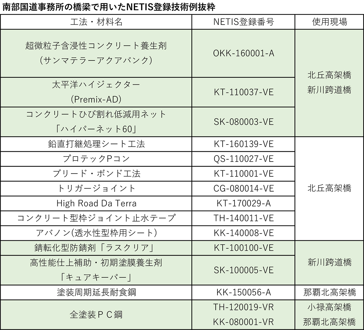小幡 改築系では下記表のようなNETIS登録技術を採用しています。