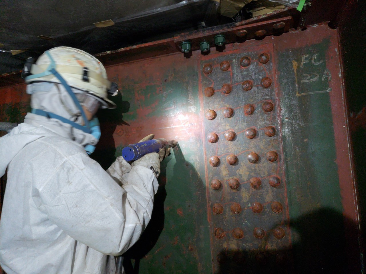 管理系では平成29年度泉崎歩道橋修繕工事で再塗装時の素地調整に、バキューム吸引・パワーツールケレンシステム(NETIS KT-150120-A )などを用いています。