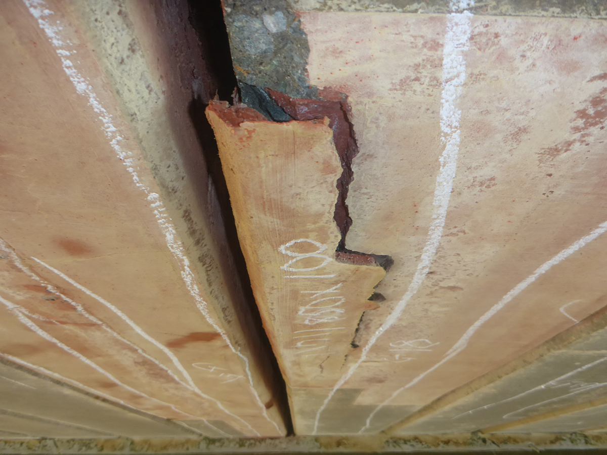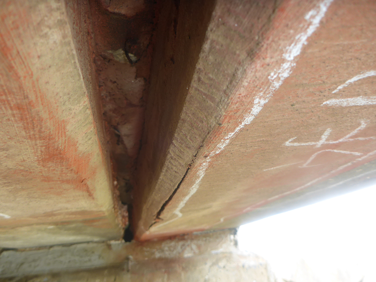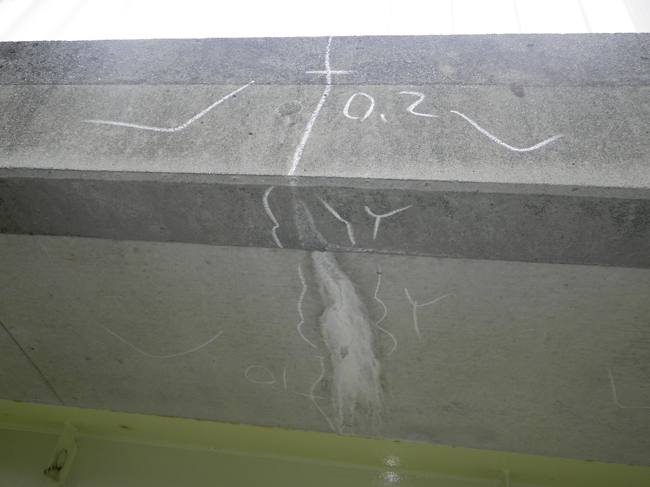 PC橋の主な損傷は桁下フランジでのひび割れ、浮きがあります。海側からの飛来塩分が桁下を巻き込んで付着し、降雨でも流れにくいことが原因と考えられます。また、コンクリート塩分量規制前(1986年以前)に建設された橋梁も36橋(全体の28%、別表)あり、内在塩分が要因となるひび割れ、浮きが生じていると考えられます。加えて、ASRが発生している橋梁も確認されています。