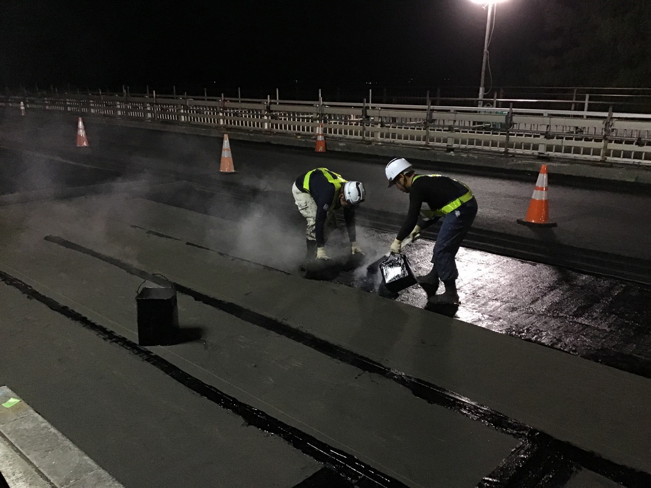 床版については著しい劣化が見られていないため、概ね施工済みとみています。今後は損傷が発生した箇所について詳細調査を行い、防水工を検討していきます。