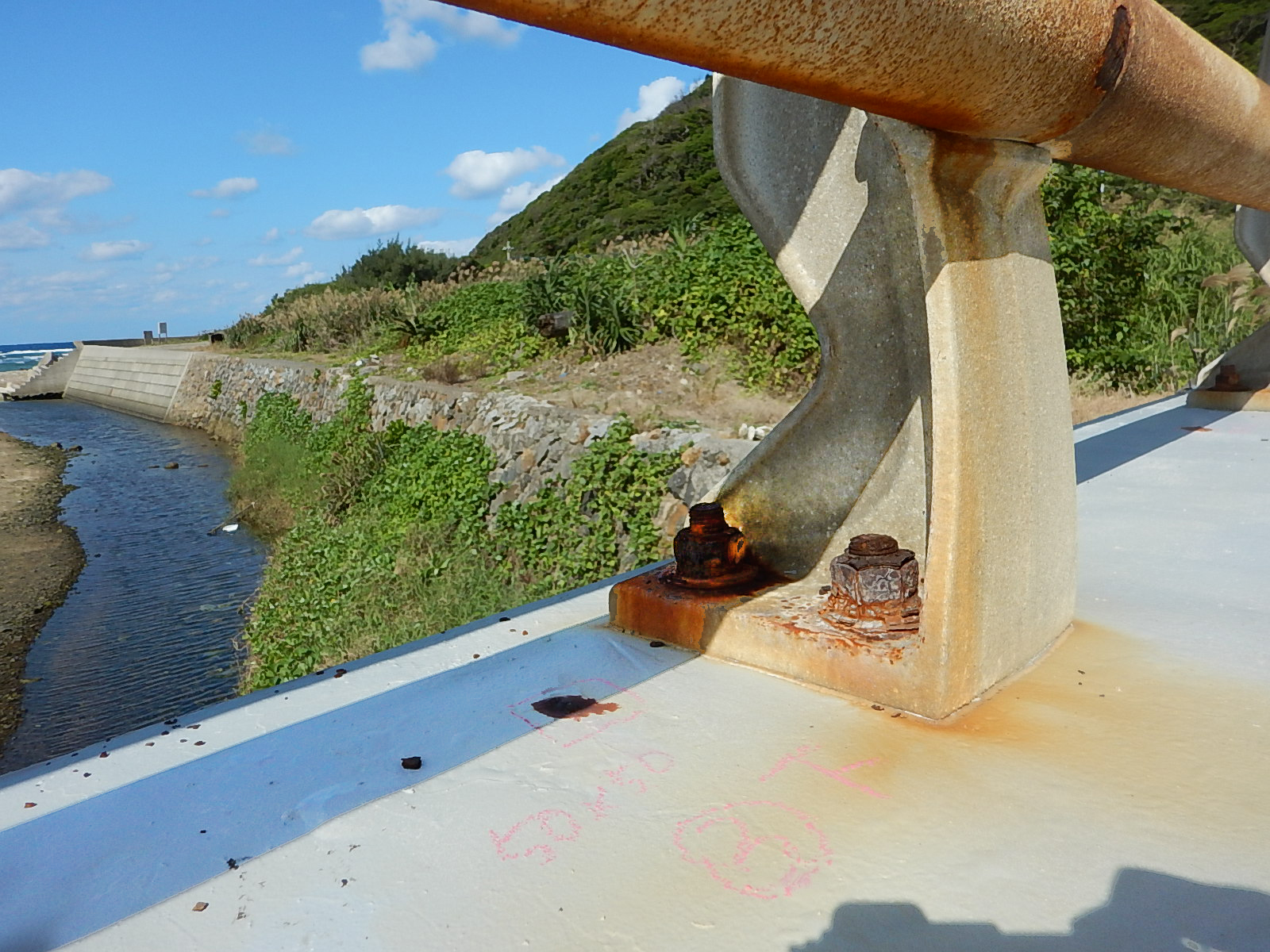 海岸にほど近い(一)佐仁赤木名線 第二佐仁橋の高欄腐食