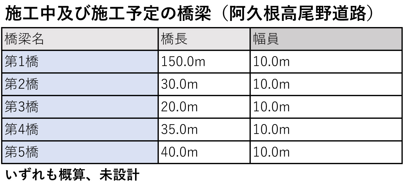 島田 泊野道路ほど多くなく、橋梁は渡河部、跨道部のみとなります。