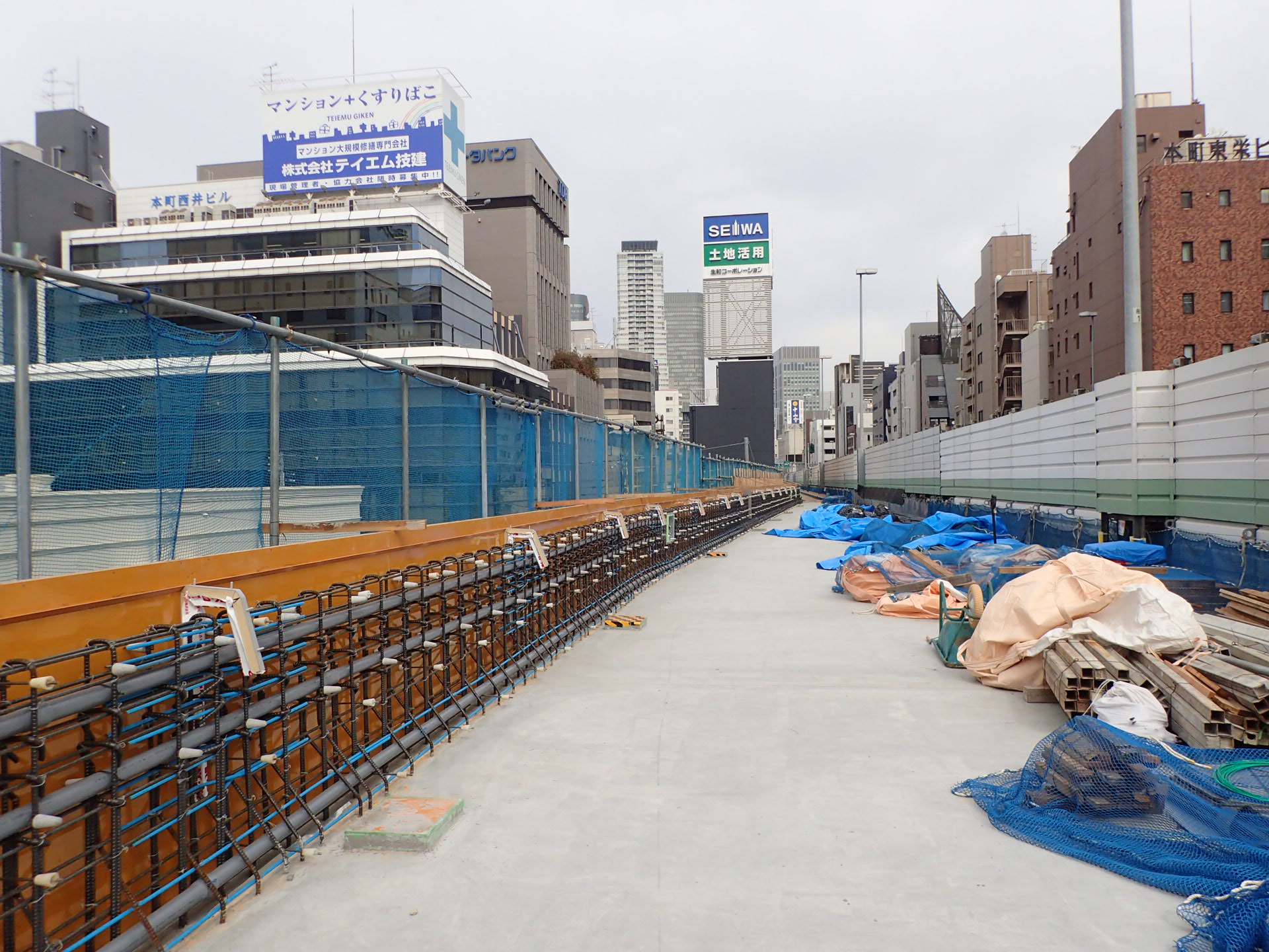 仲 本町通(国道172号)直上の1径間(信濃橋入口改築として行っているランプの単路部)のみ試験施工で採用します。工事は7月からを予定しています。