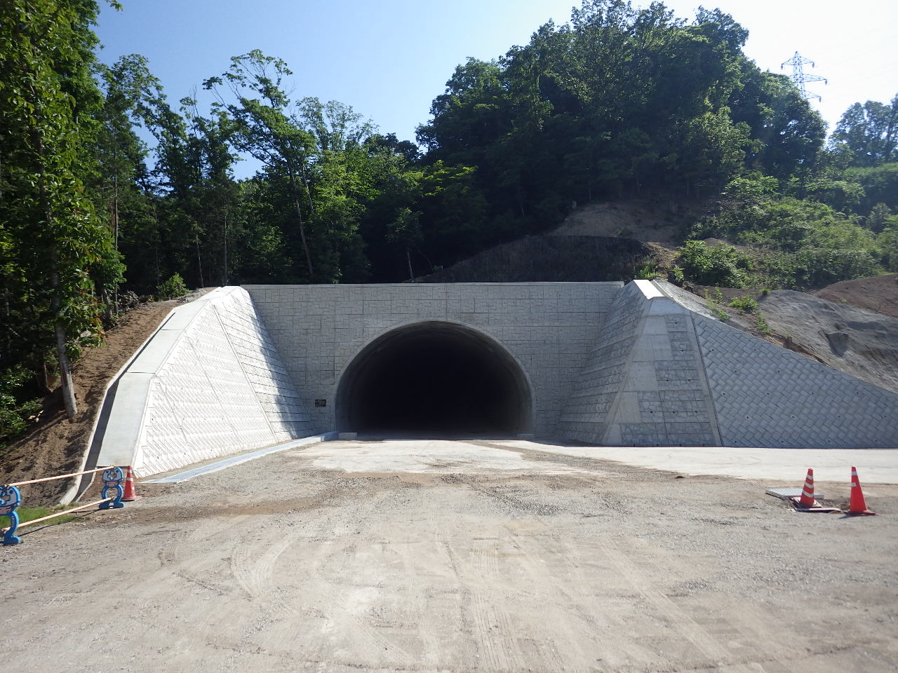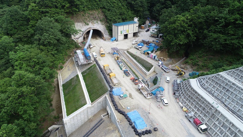 日高豊岡南道路 藤井トンネル(起点側坑口)/冠山峠道路 第2号トンネル_福井側空撮