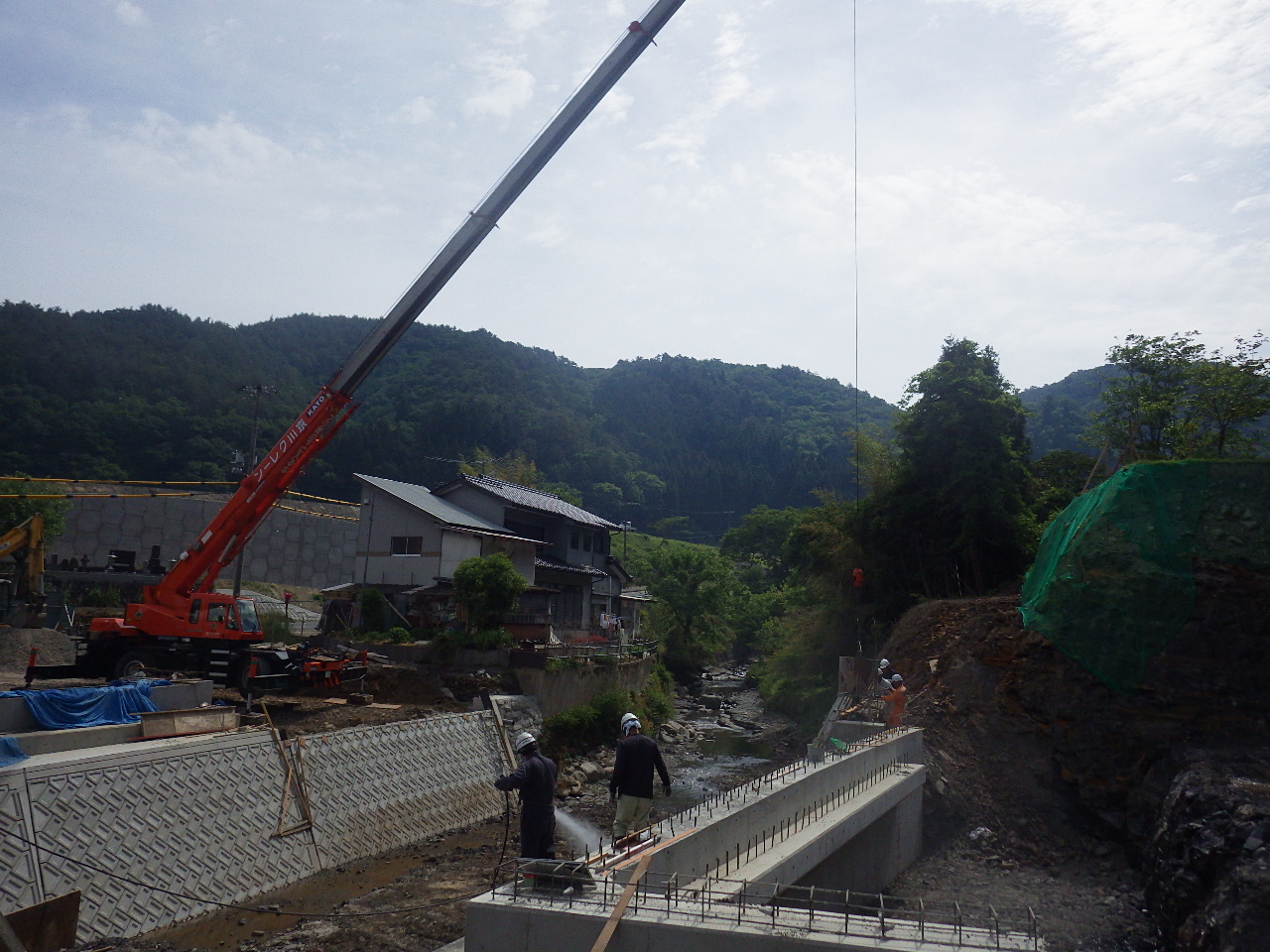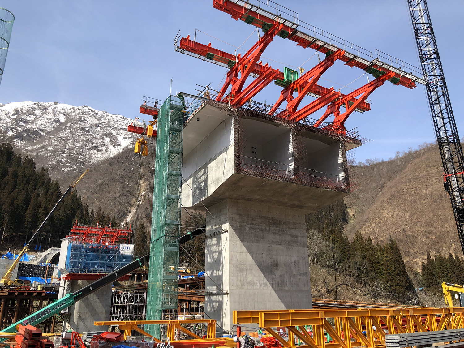 橋梁は大野油坂道路で石徹白川橋(橋長82m、鋼単純非合成鈑桁橋+鋼単純非合成箱桁橋)と九頭竜川橋(273m、PC4径間連続箱桁橋)の上部工、此の木谷橋(橋長168.5m、鋼2径間連続箱桁橋)の下部工2基、新多母谷橋(橋長68m、PC2径間連結コンポ桁橋)の下部工1基ほか3件を施工しています。