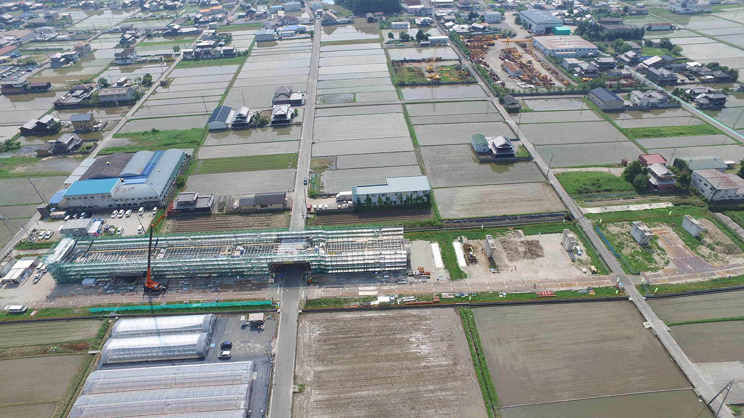 日高豊岡南道路では、山本高架橋(266m、PC4径間連続ラーメン箱桁橋)、祢布川橋(159m、PC4径間連結コンポ橋)の上部工、竹貫川橋(橋長43m、PC単純コンポ桁橋)の下部工2基ほかの工事を進めています。