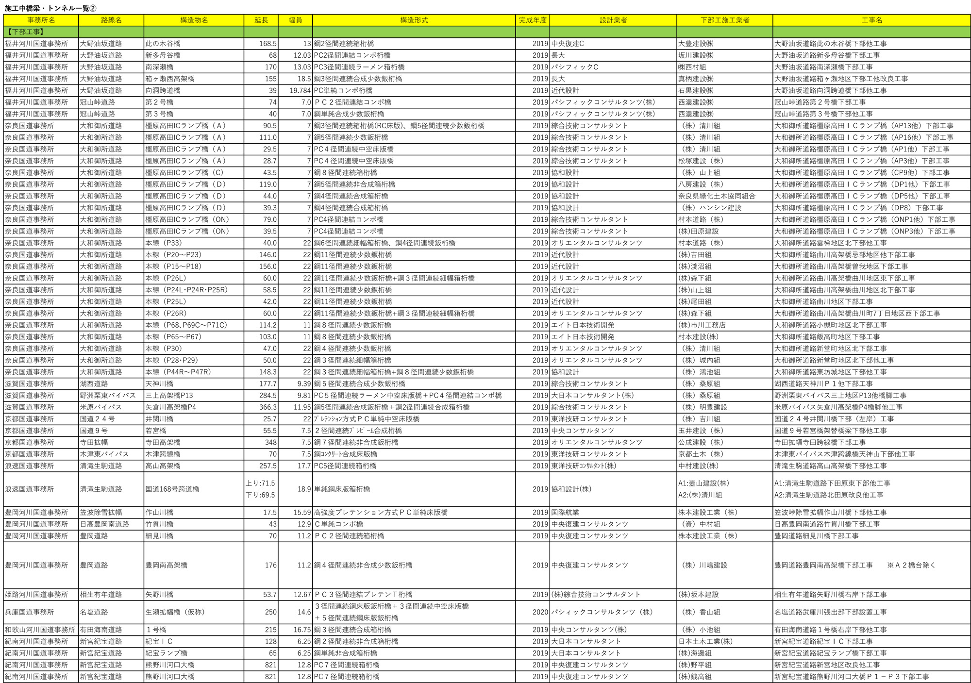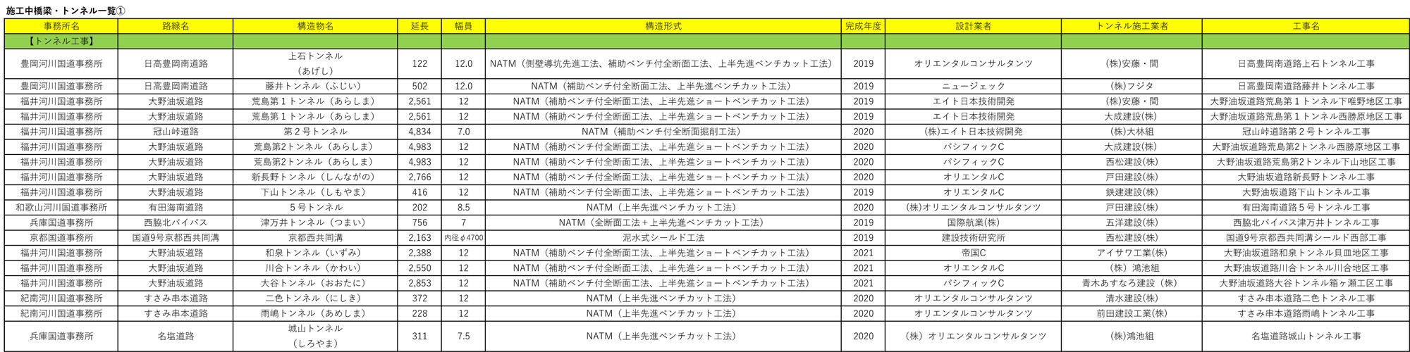 橋本 トンネルは、大野油坂道路で上半原トンネル(1,146m)、東市布トンネル(1,167m)、和泉トンネル(2,388m)、川合トンネル(2,550m)、大谷トンネル(2,853m)の5か所を手続き中または契約済みです。すさみ串本道路では有田上第一トンネル(190m)、同第二トンネル(136m)二色トンネル(372m)、雨嶋トンネル(228m)が手続き中または契約済みです。また、有田海南道路で5号トンネル(2,033m)、豊岡道路で戸牧トンネル(610m)、奥瀞道路(Ⅲ期)で1号トンネル(481m)、名塩道路で城山トンネル(311m)がそれぞれ手続き中または契約済みです。