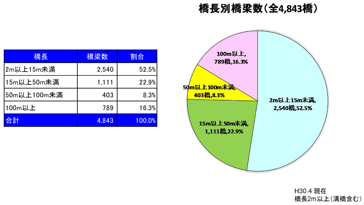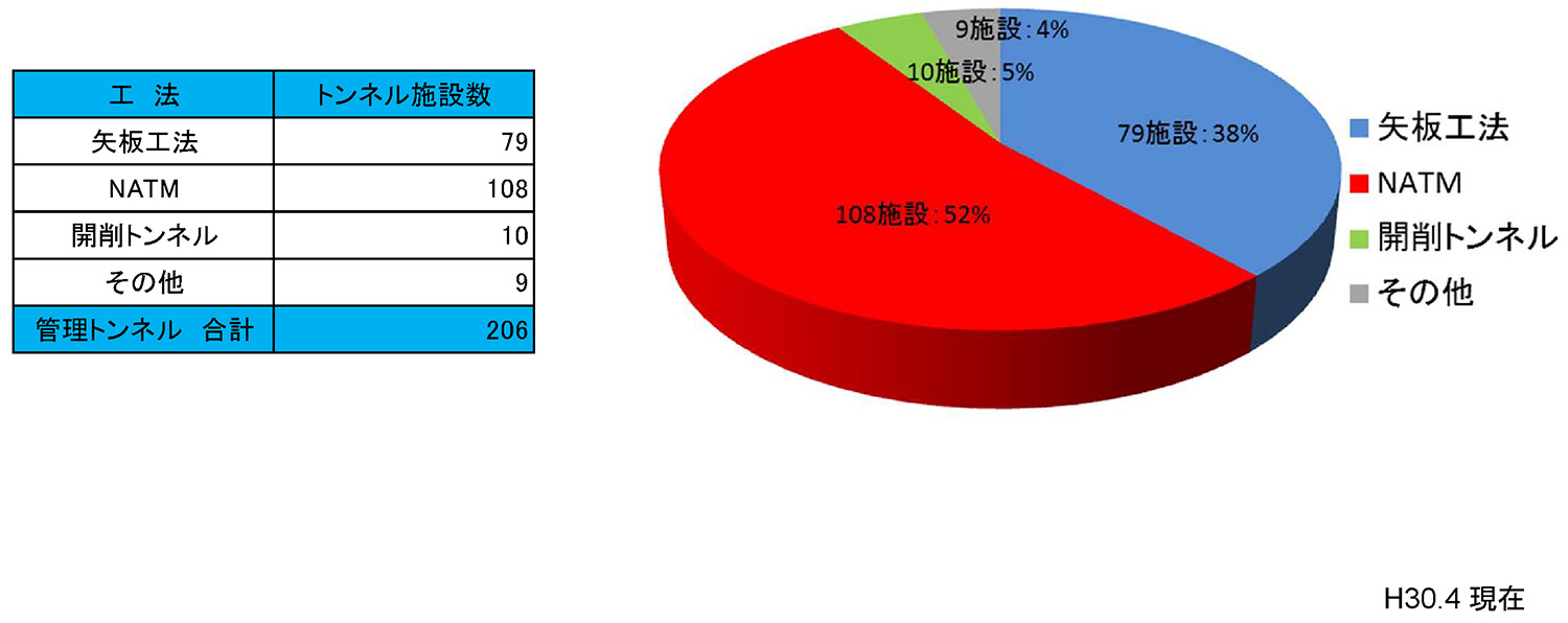 100m以上の長大橋は789橋、トンネルは矢板工法が79箇所