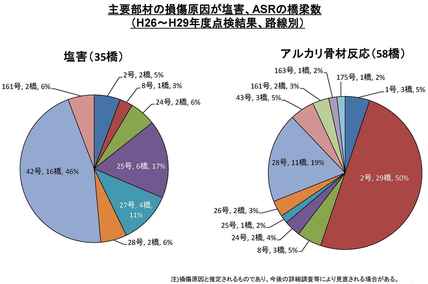 塩害は35橋、ASRは58橋で発生している疑いあり