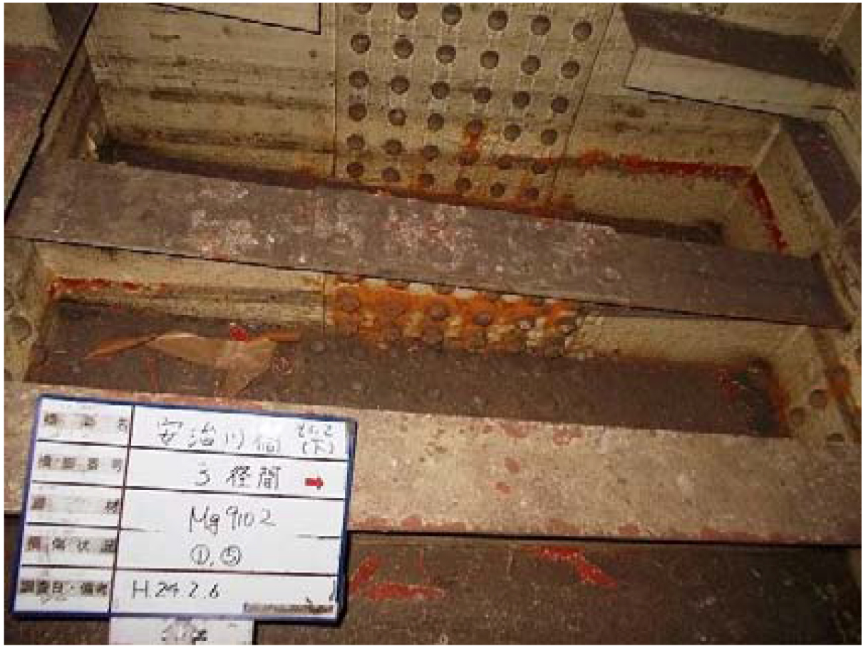 安治川橋の亀裂損傷写真