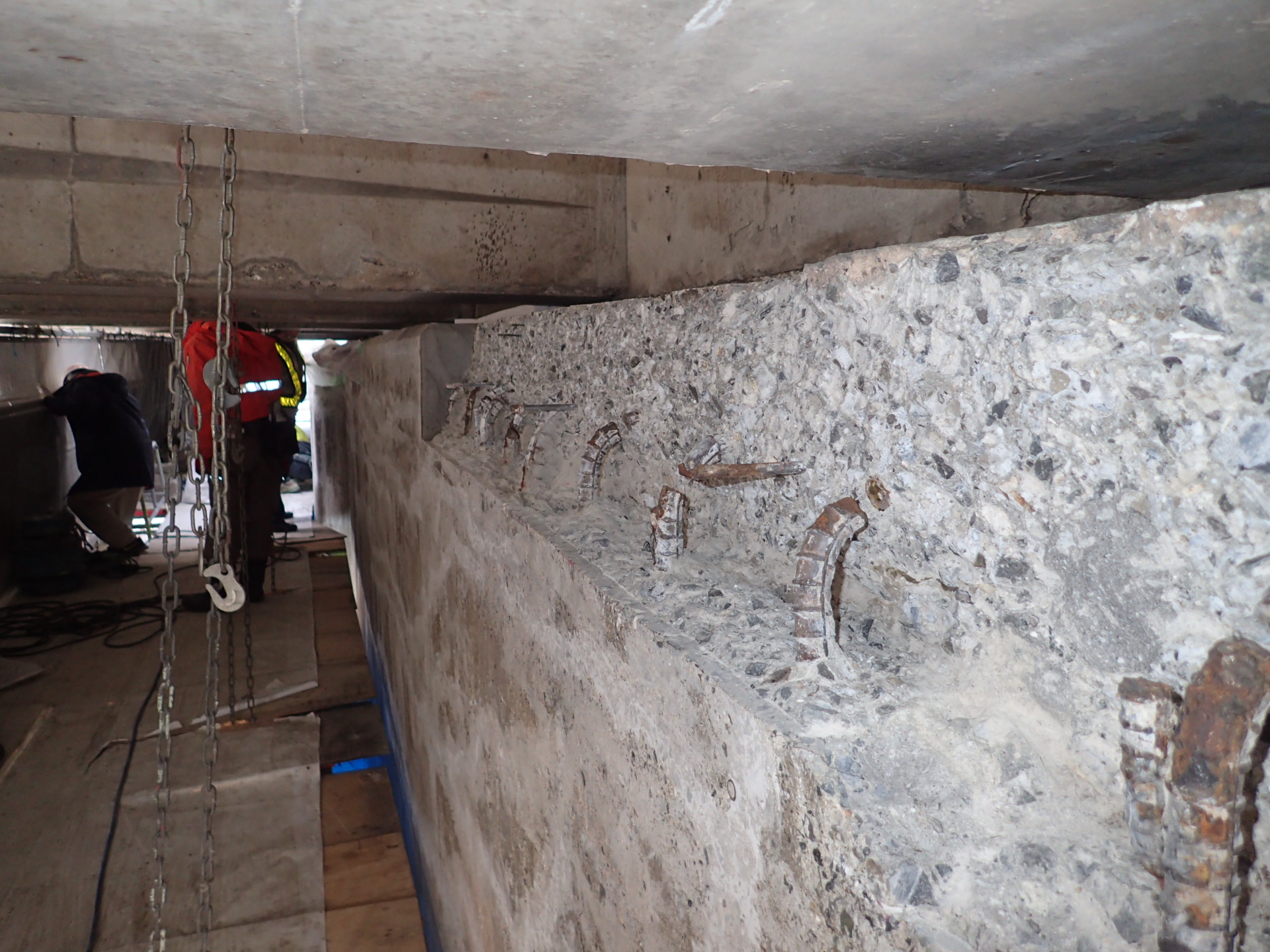南部大橋の主桁コンクリート補強材の損傷