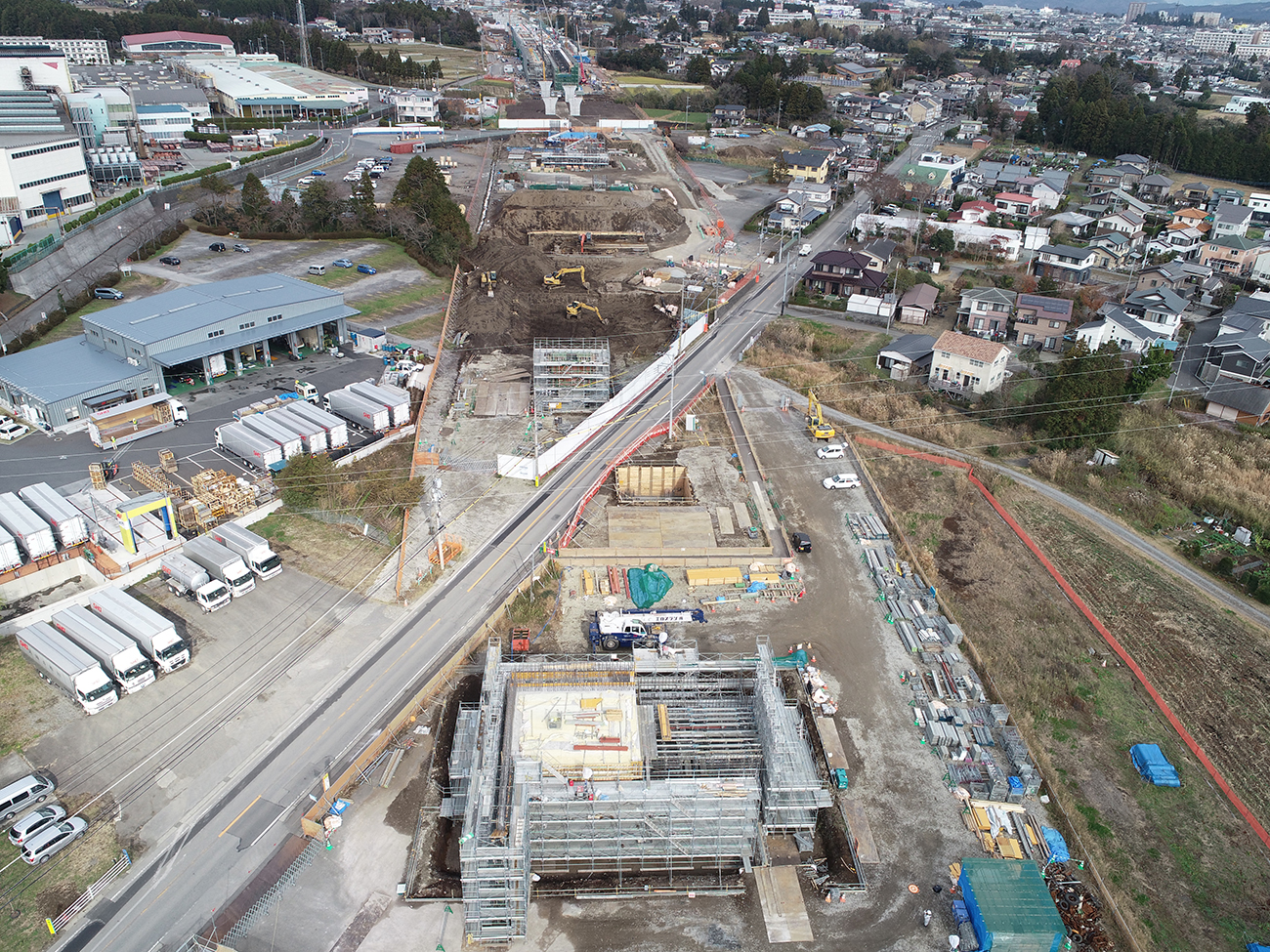 ぐみ沢上高架橋と桁製作ヤード