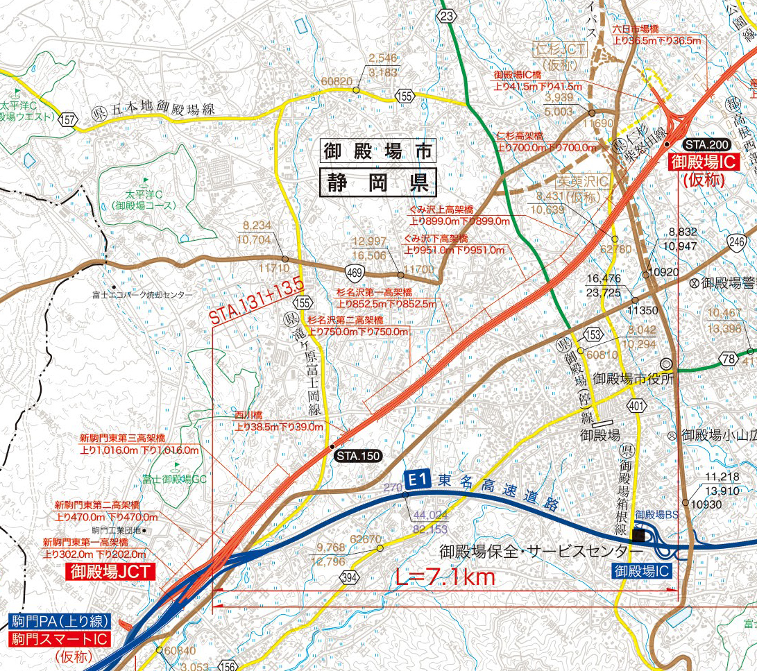 御殿場JCT~御殿場IC間拡大図