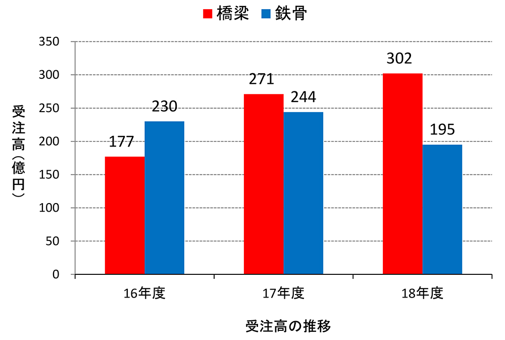 鋼橋は、昨年度の受注が堅調だったため、今年度の工場稼動は順調に推移する見込みだ。ただ、今年度の新設橋梁の発注量は前年度比で少なくとも20~25%落ち込むとみており、受注面での苦戦が必至な情勢にある。