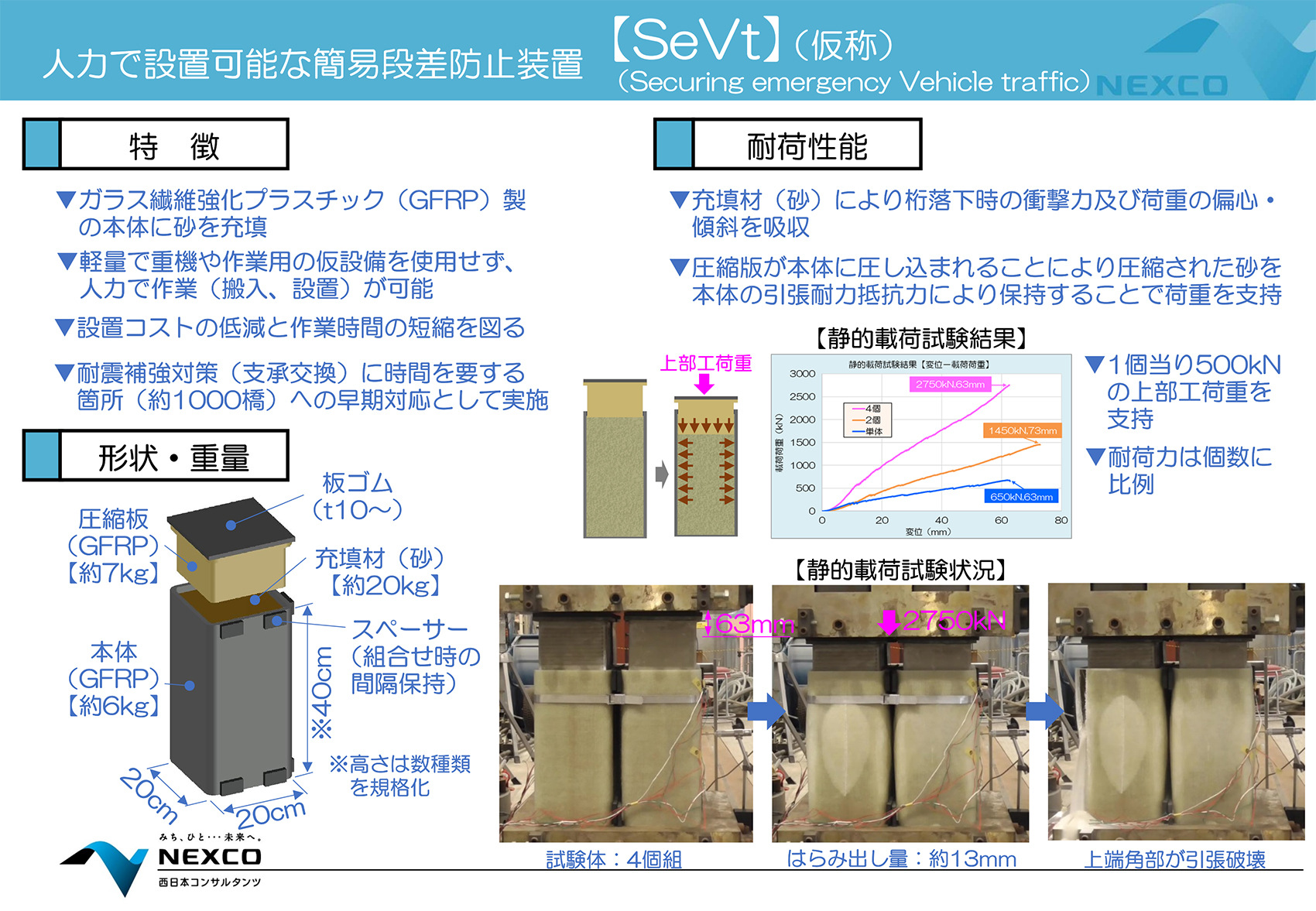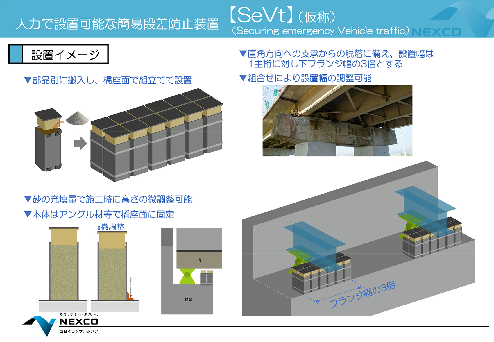 長大橋耐震補強 応急対応に簡易段差防止装置を開発