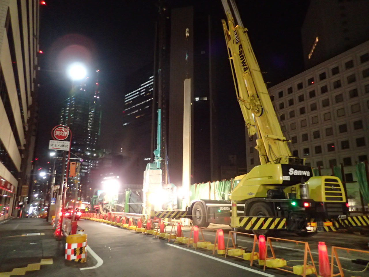高橋 杭を打設している間とコンクリート矢板施工時は毎晩です。基本的には、高速構造物の施工においては常に夜間1車線規制で施工していました。