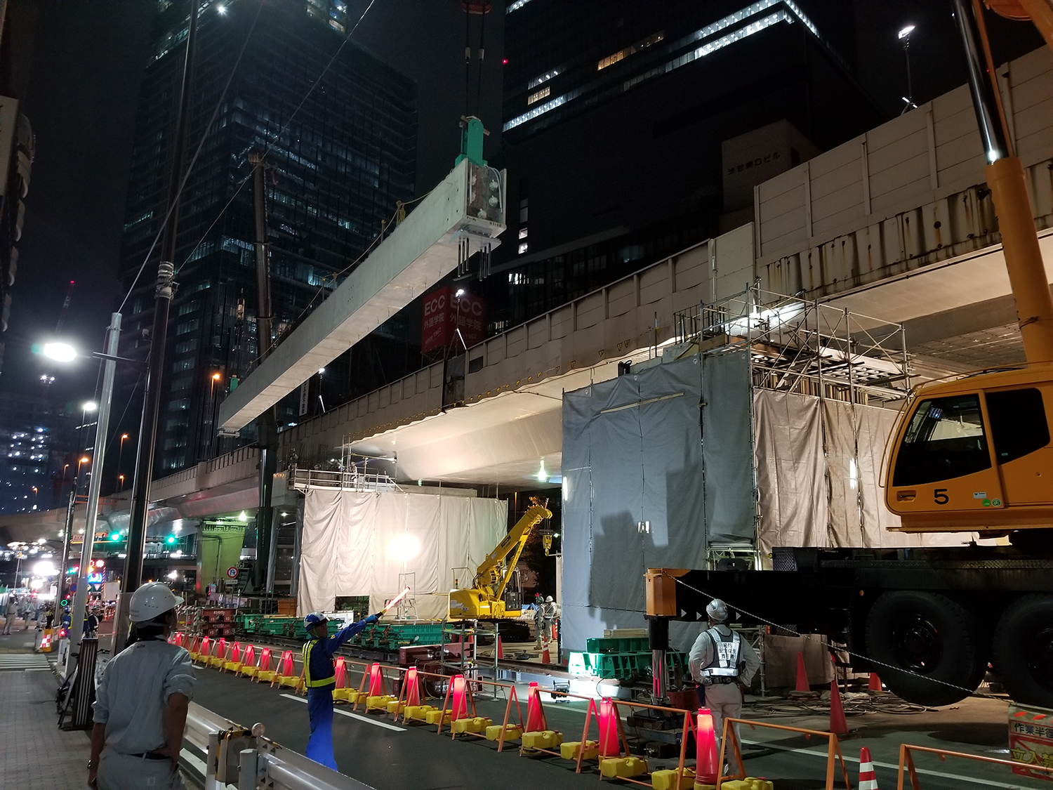 高橋 合流区間なので既設高欄は撤去します。外に新たな高欄をつくります。