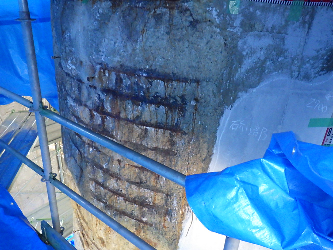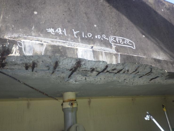こうした内在塩分や塩害による損傷は橋梁上部構造が顕著で、壁高欄、地覆にも見られ、浮きや鉄筋露出などが発生しています。