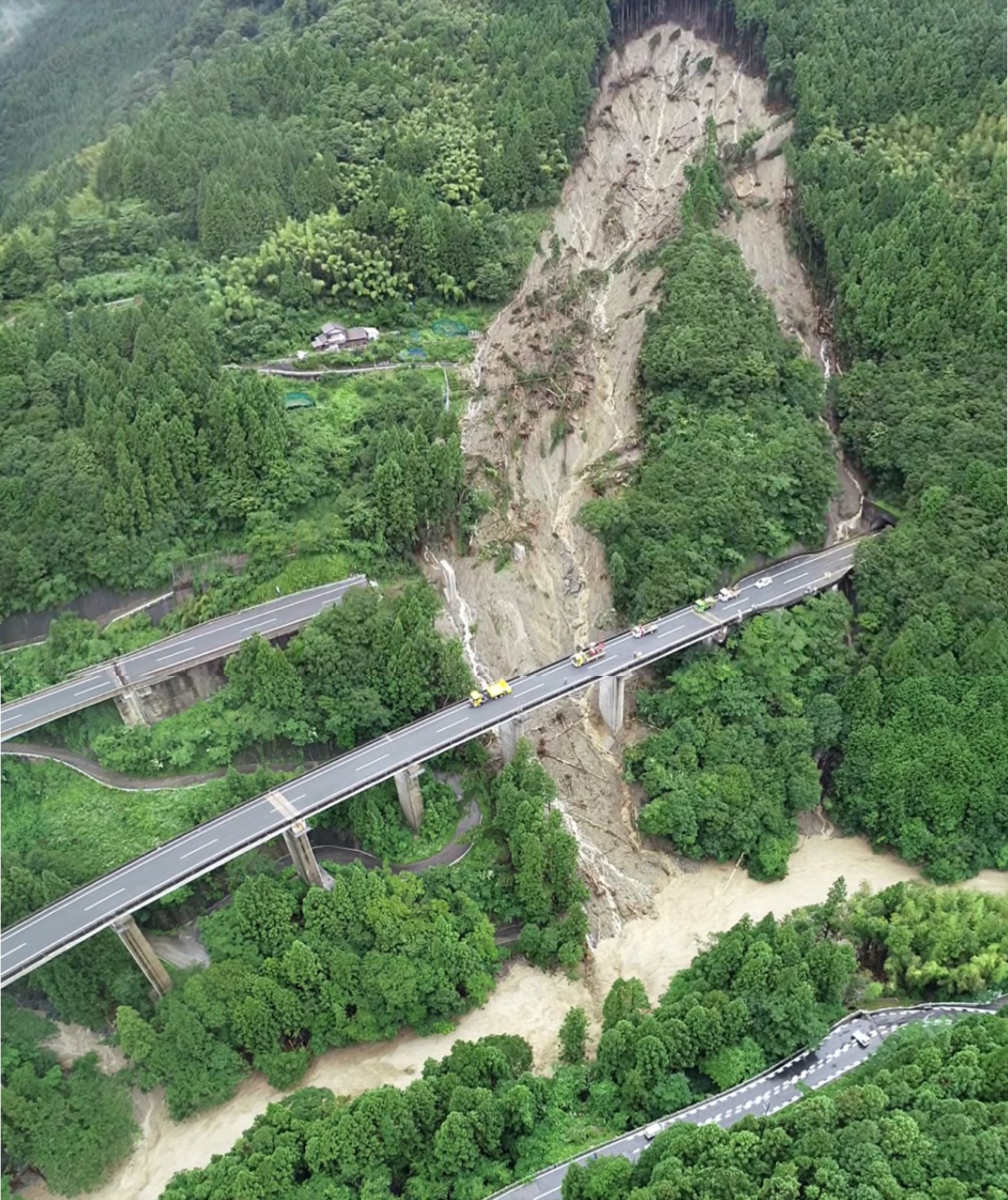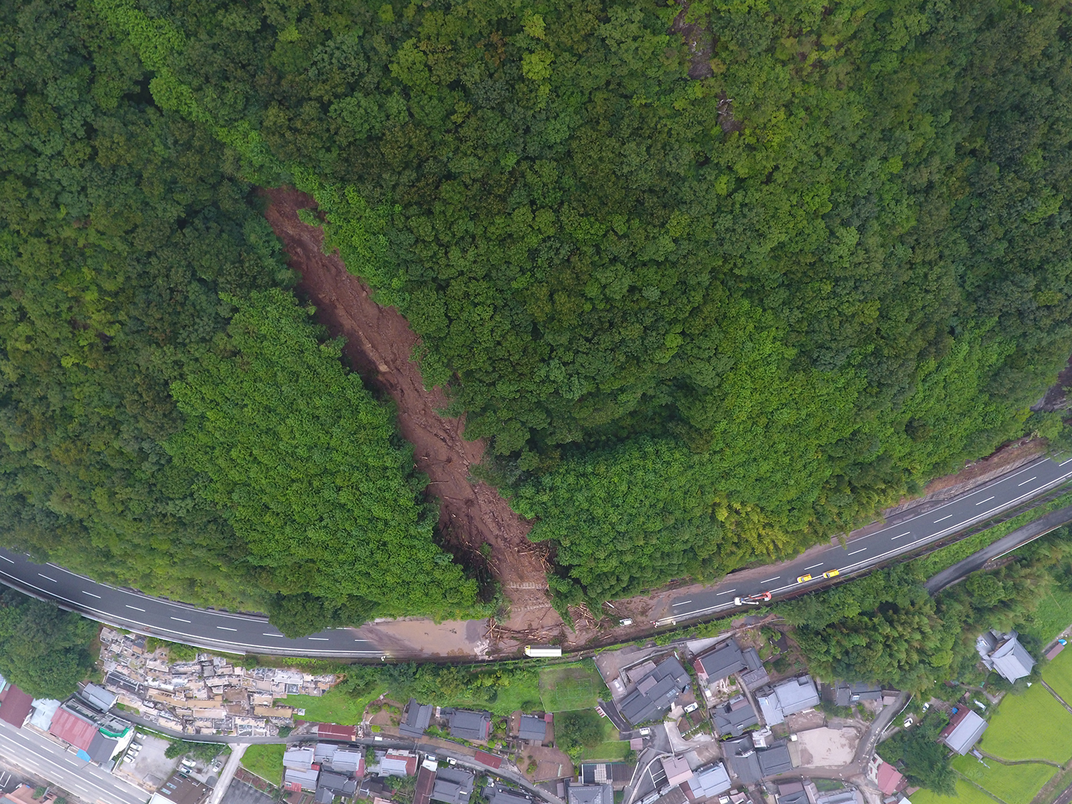 安達 雨の降り方が本当に変わってきています。これだけ線状降水帯が発生して雨が降り続けると山の地盤も緩んで、大きな災害を引き起こします。新見市内を走る中国道でも災害対策を行いましたが、区域外の140mの高さを超える個所の山が滑り、高速道路本線に影響を与えています。