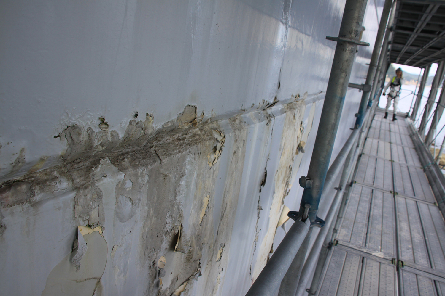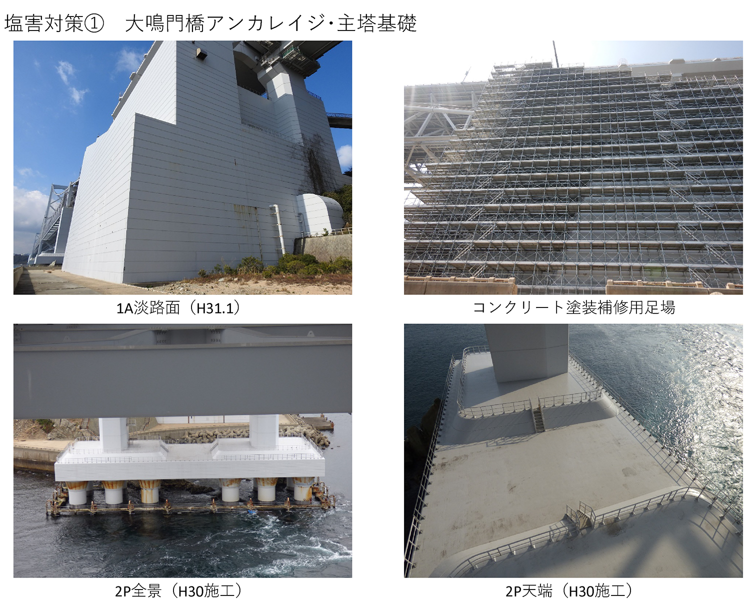大鳴門橋は下部工をすべて塩害対策でライニングしています。ただ、劣化をしてきているので、1Aのアンカレイジの太平洋側面について、今年度に塗替え塗装を行う予定です。
