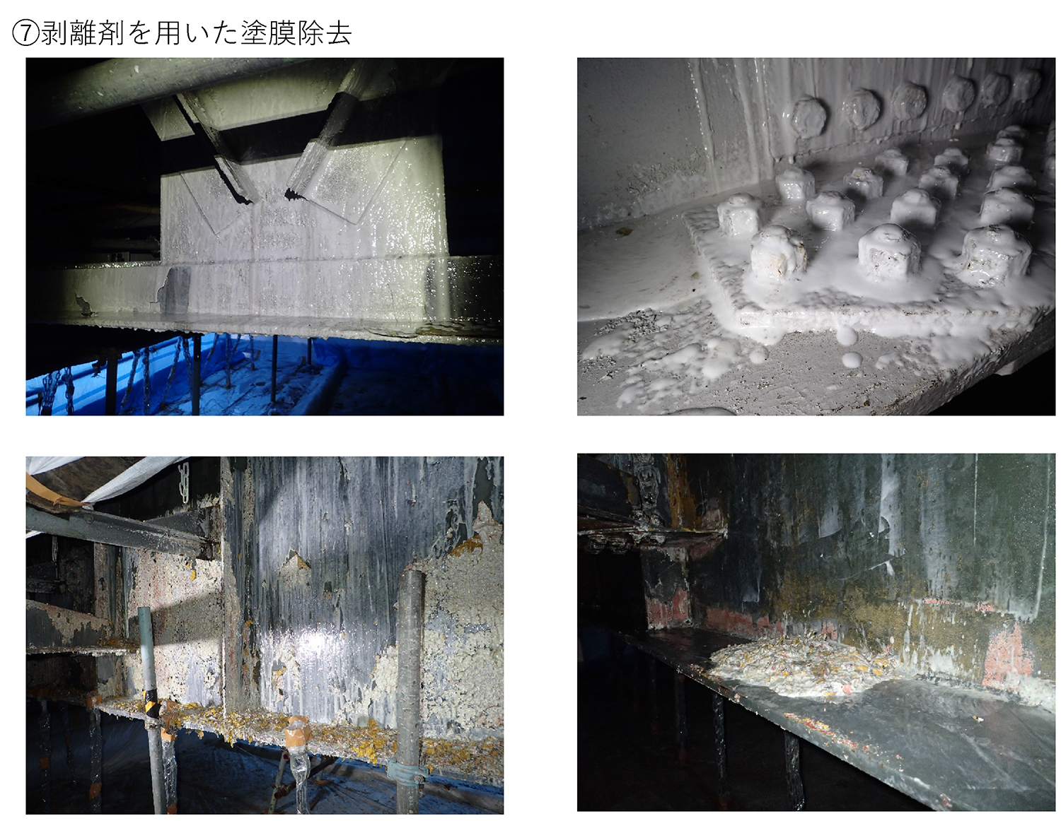 磯江 伊毘高架橋・孫崎高架橋の下塗りに鉛が含有しています。第六伊毘高架橋の塗替塗装、孫崎高架橋主桁下フランジの部分補修の際には、湿式ブラストや塗膜剥離剤を用いた塗膜除去を実施しています。