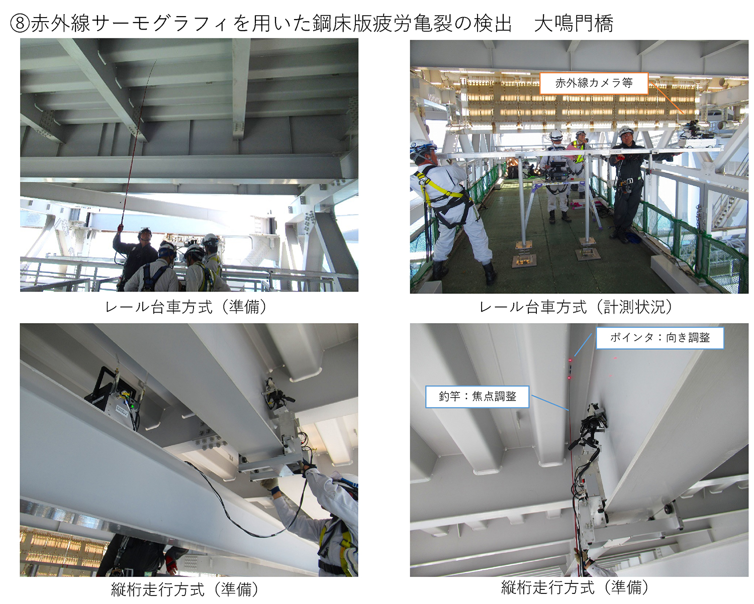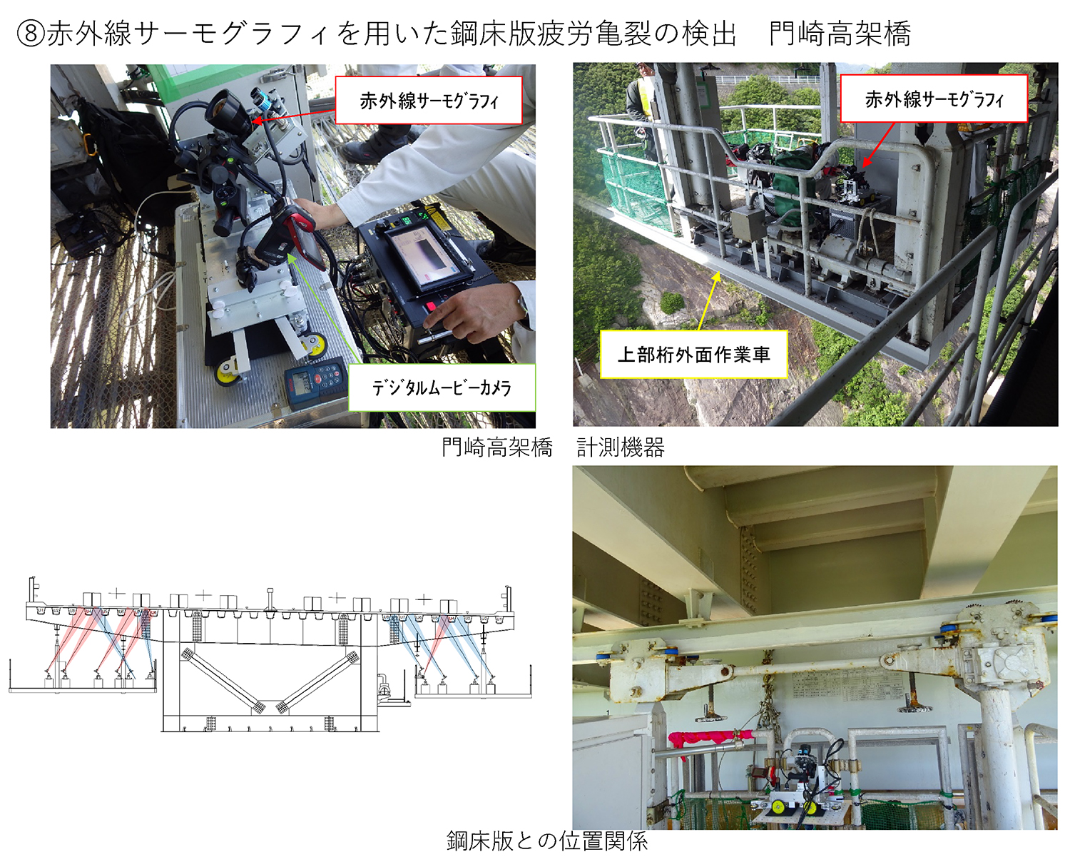 磯江 先ほどの、TRSを用いた鋼床版疲労き裂当板補修や、赤外線サーモグラフィを用いた鋼床版疲労き裂の検出があります(右写真群)。