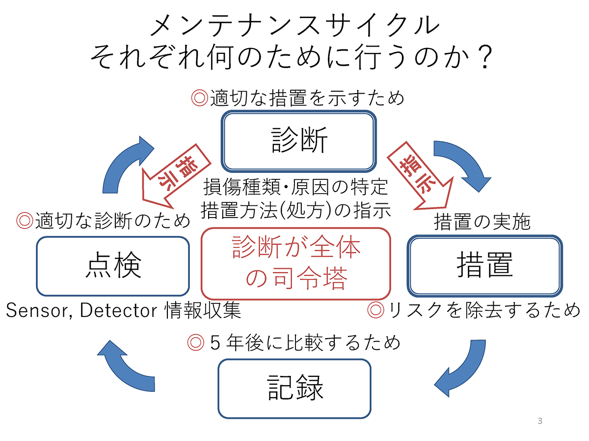 西川 我々は診断AIを作っていきます。メンテナンスの司令塔は診断を行うお医者さんだからです。点検者に取得するデータの内容を指示し、措置する人たちに処方箋を書くのはお医者さんの仕事ですから。