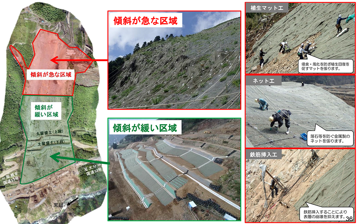 阿蘇大橋地区大規模崩落の急斜面部分の復旧は概ね完了