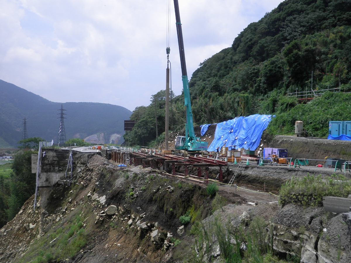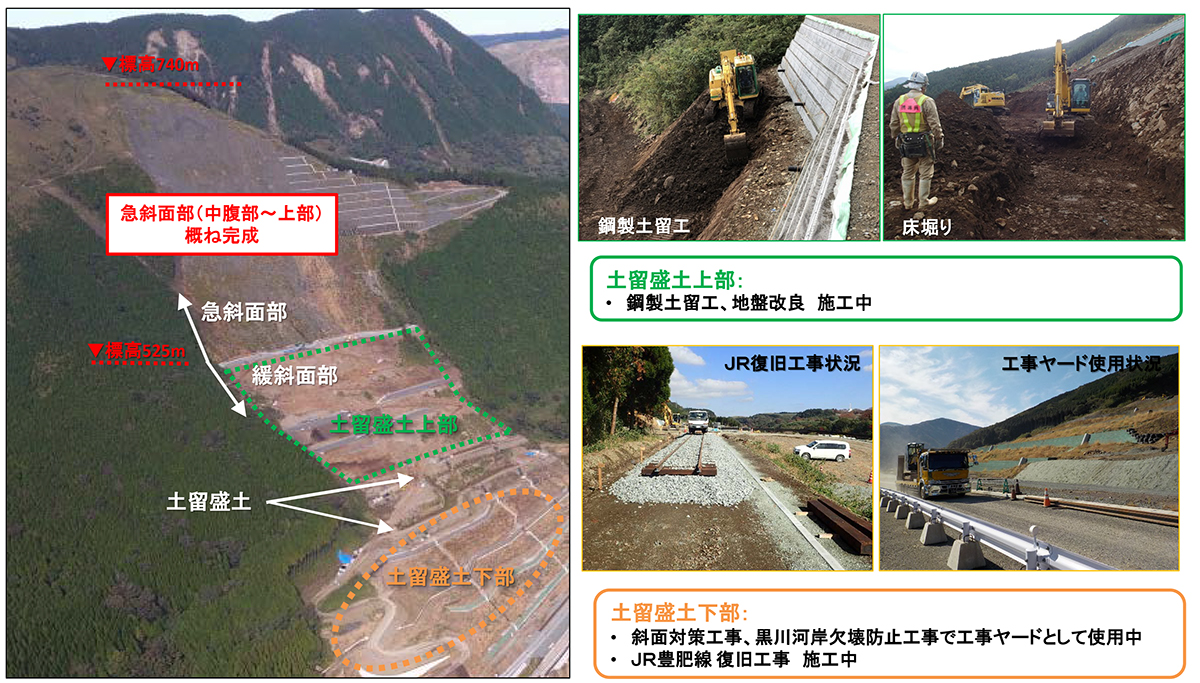 また、並行するJR豊肥本線についても欠壊防止工を行った国道57号の敷地を工事用ヤードとして使用して復旧工事が行われています。