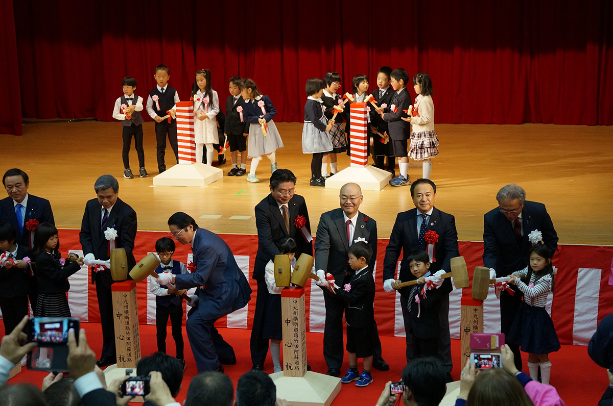11月17日開催された竹田阿蘇道路中心杭打ち式