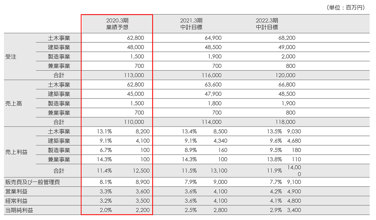 森 中期経営計画2019の数字(土木事業では受注高649億円、売上高636億円)を最低レベルとして予算化したいと考えています。