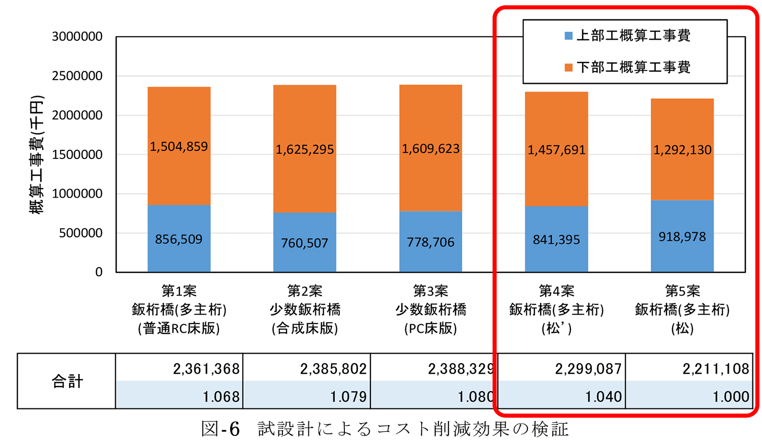 コスト縮減 橋梁全体を松’で3%、松で7%の縮減可能