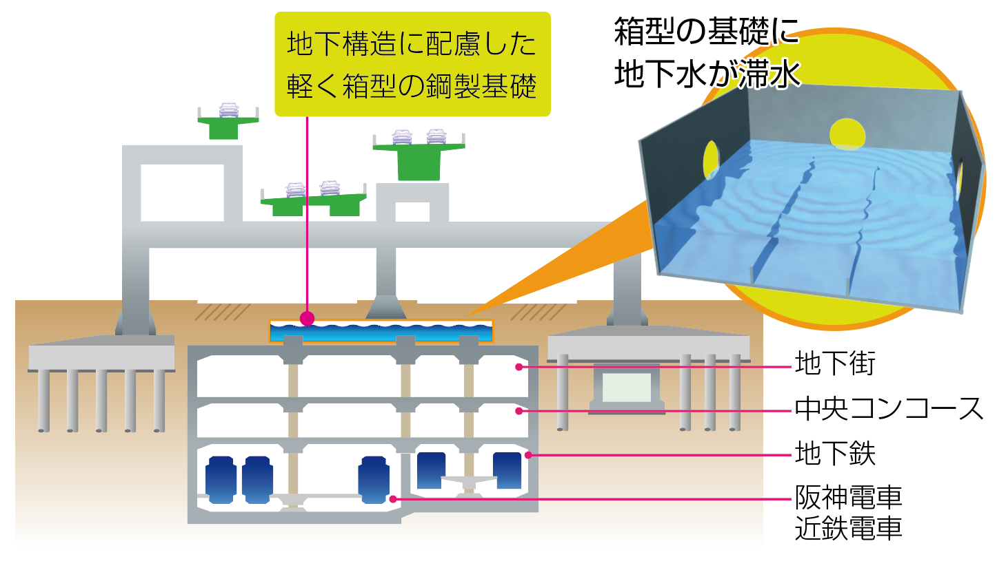 堺線の湊町付近の橋脚基礎損傷状況