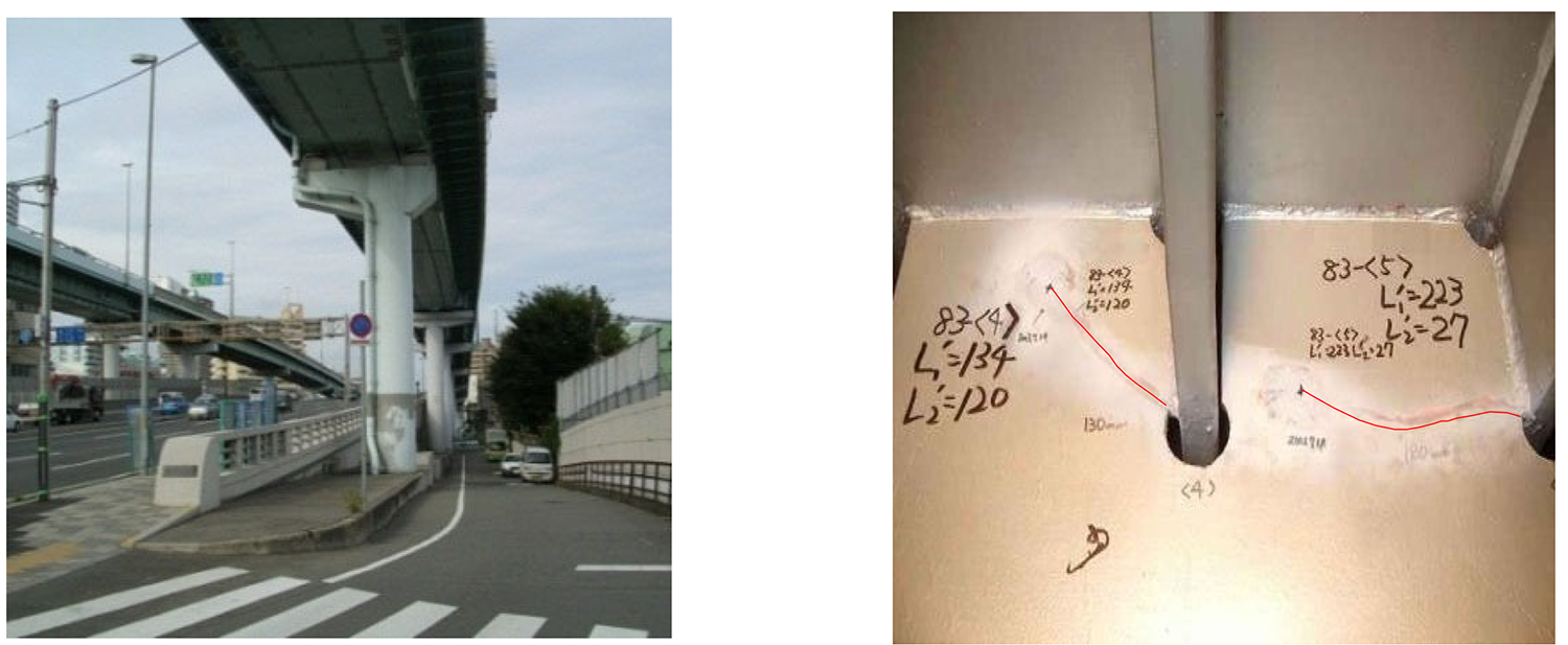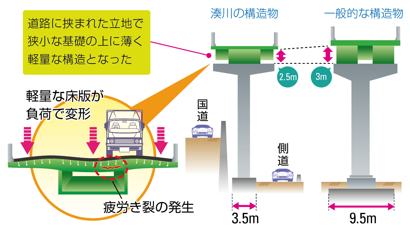 湊川付近の高架橋の損傷状況