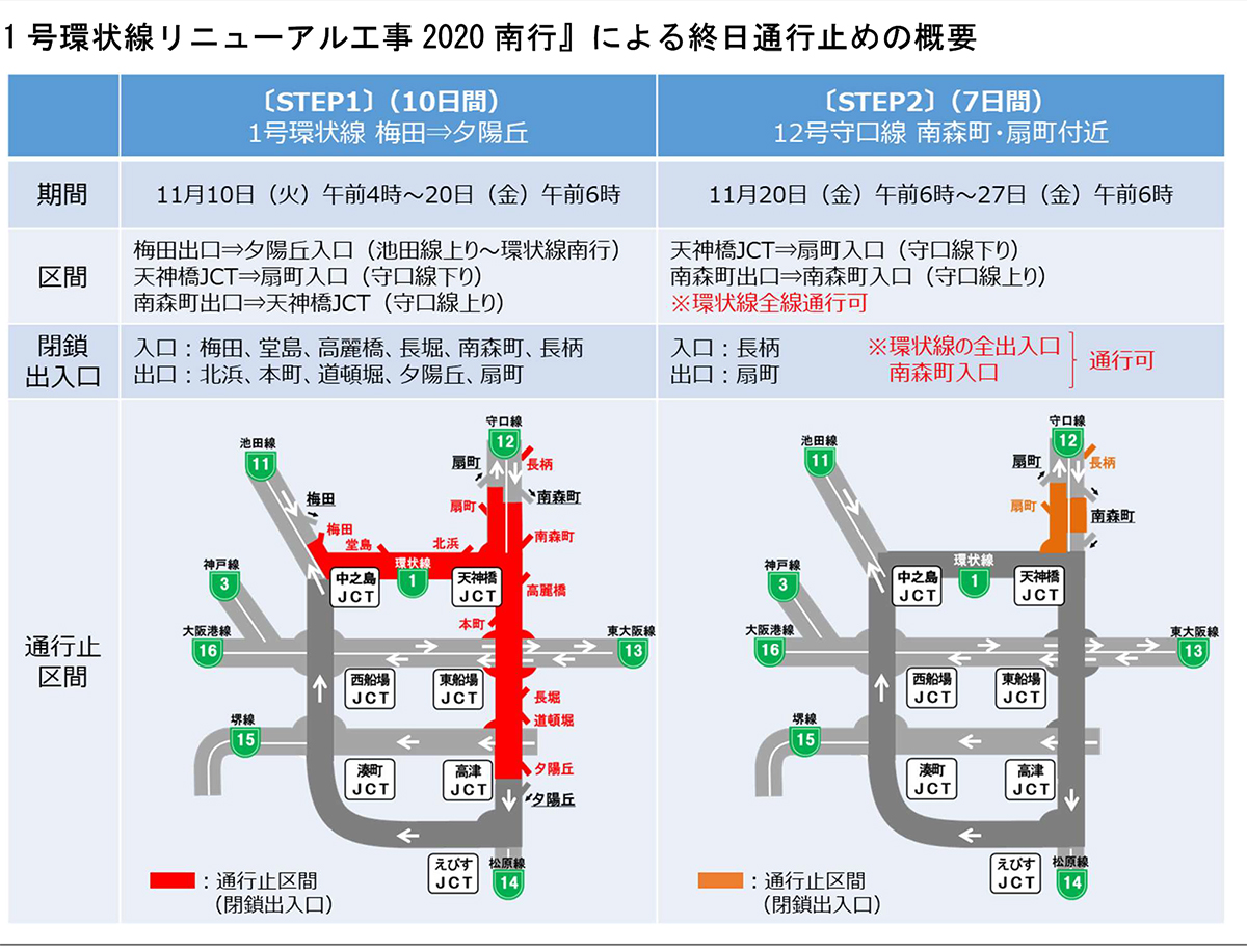 今秋に1号環状線(南行)の高架橋をリニューアル