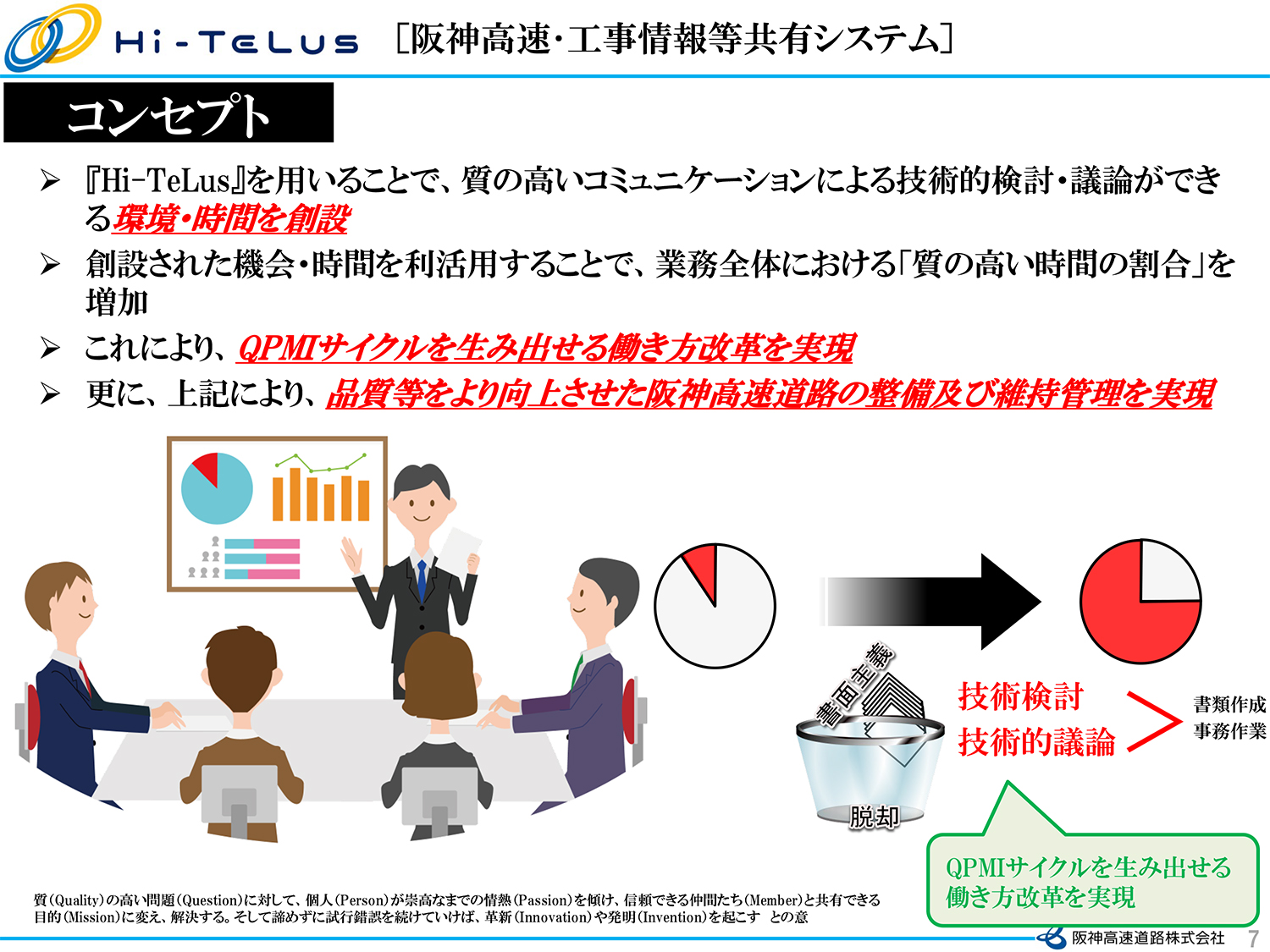 吉田 『Hi-TeLus』は阪神高速道路・工事情報等共有システムの略で、工事・業務契約等における「連絡・調整」や「書類作成・取り交わし」の手段・方法を抜本的に見直し、原則全ての手続等をシステム上で電子的に実施することで、高度化・効率化を図るシステムです。私も先ほど申し上げたように入札制度改革に官側の立場として関わりましたが、その中でも現場の負担を軽くしてほしいという要望は大きなものがありました。