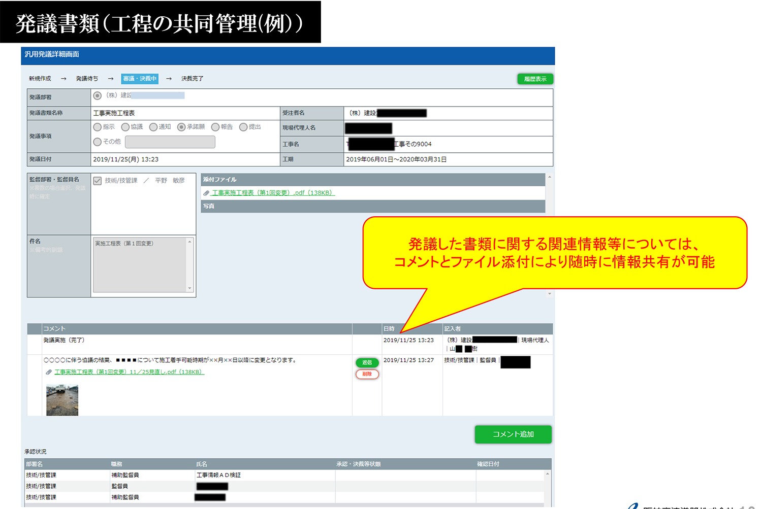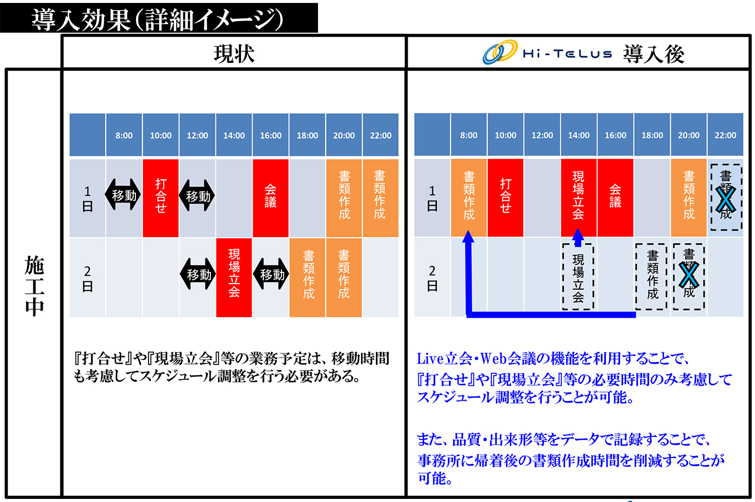 現場では設計変更の協議や細部の確認などを含めて、たくさん書類を作る必要があります。技術者として入ったのにモノづくりじゃなくて書類づくりだとぼやく声も聞こえてきました。発注者も忙しいため、施工者が相談してもレスポンスが悪くなりがちでどんどん現場の工期が遅れてしまうことがありました。当時から書類の簡素化やワンディレスポンスは叫ばれていましたが、Hi-TeLusはそうした要望に対応できるシステムと言えます。