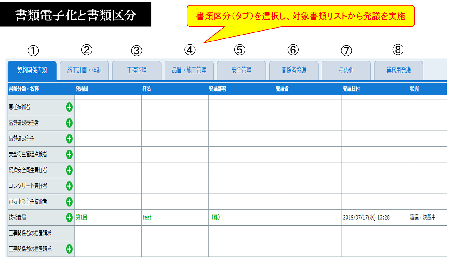 Hi-TeLusの書類の電子化と書類区分/申請画面イメージ