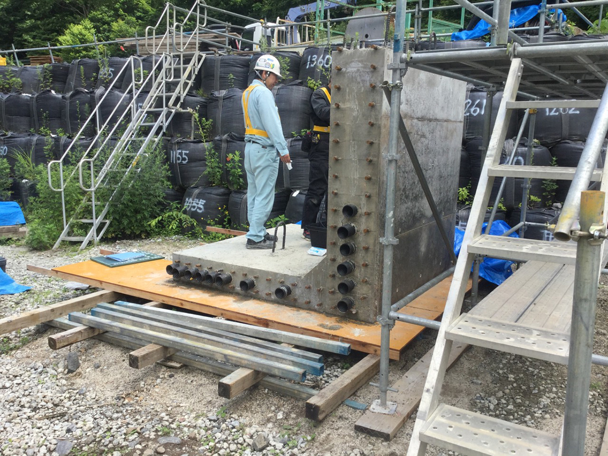 髙松 コンクリートの品質を均一に保つために、アジテータ・トラックの受入時に通常は1台のところ、5台連続して空気量とスランプの試験を行います。また、主桁側壁は過密鉄筋になっており、コンクリートの充填が難しくなるため、実物大の供試体をつくり、実際に使用する締固め機で打込みをする試験施工を行っています。