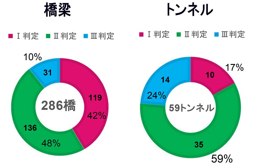 Ⅲ判定は橋梁で10%、トンネルで24%