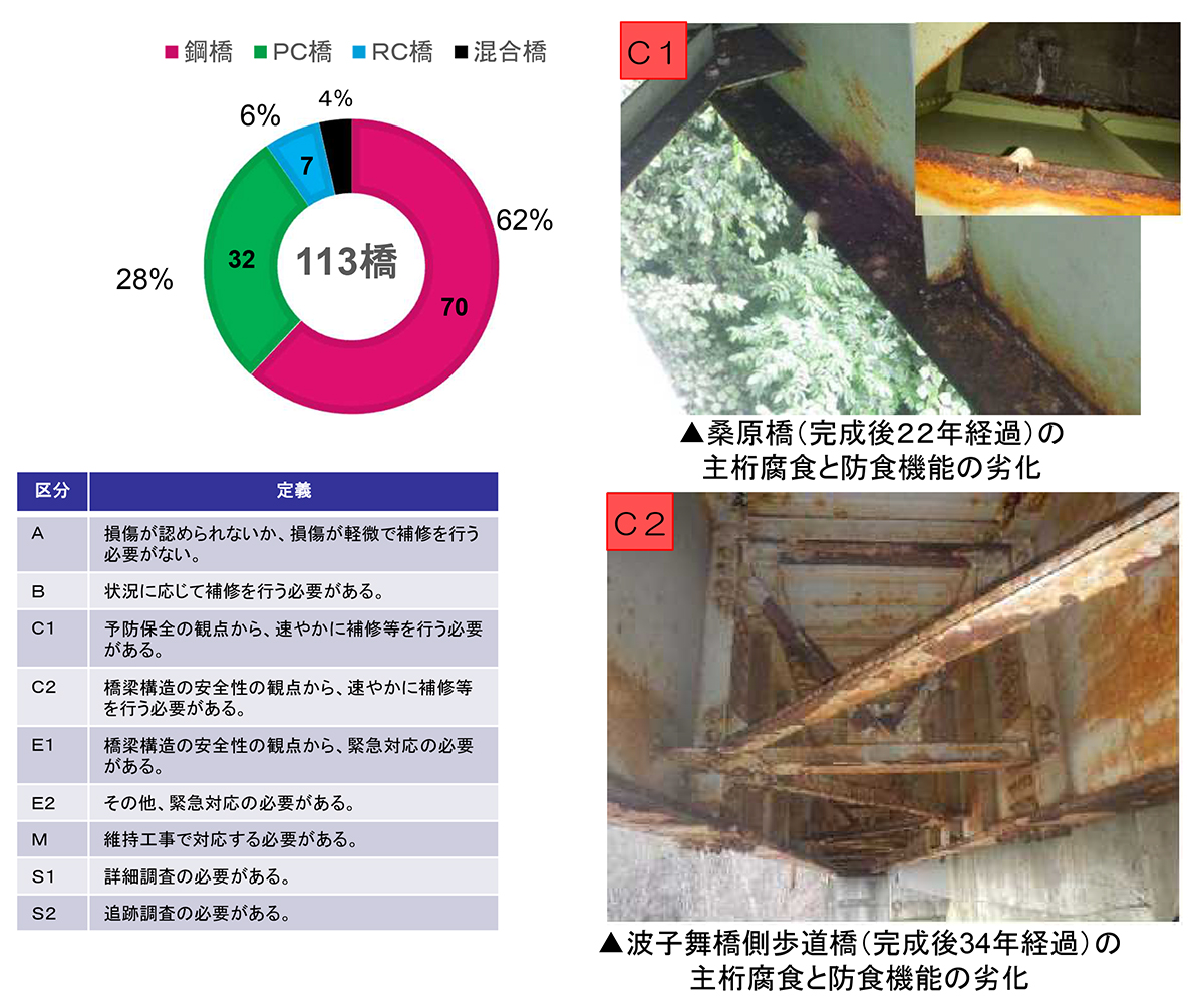 ――橋梁とトンネルの定期点検結果を教えてください