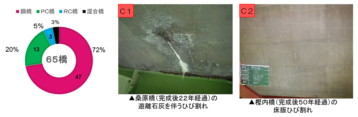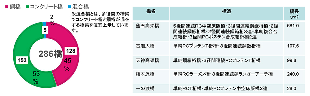 橋梁286橋、トンネル59本を管理