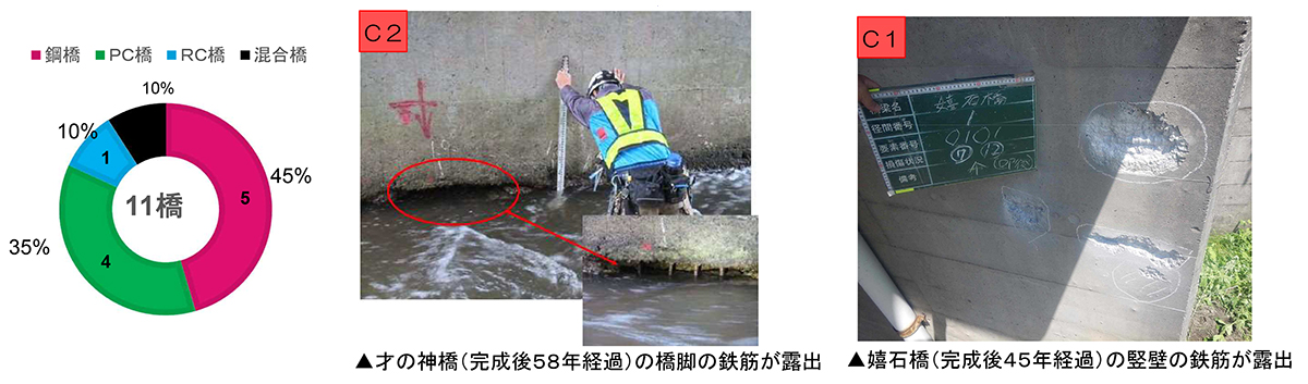 橋種別橋梁割合と管内の主な橋梁