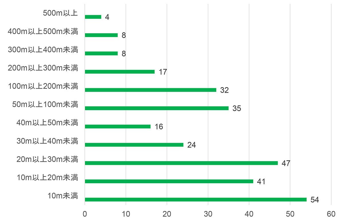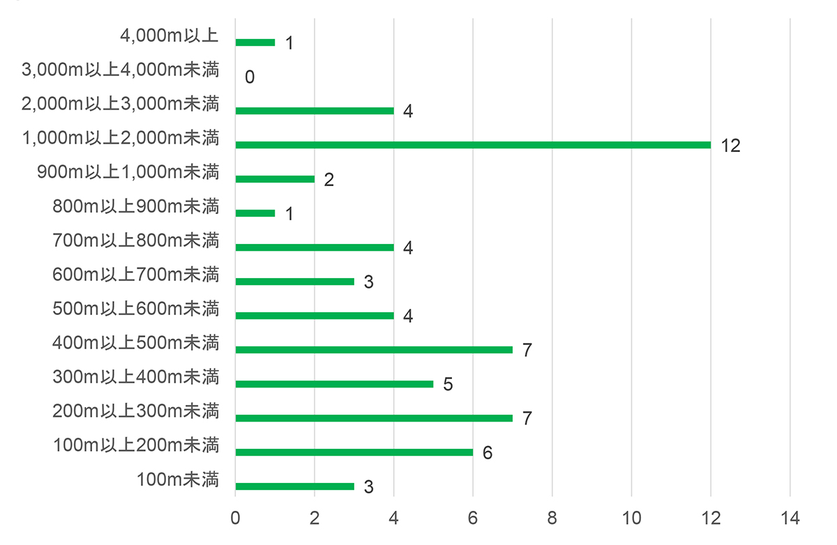 延長別トンネル数と路線別トンネル数